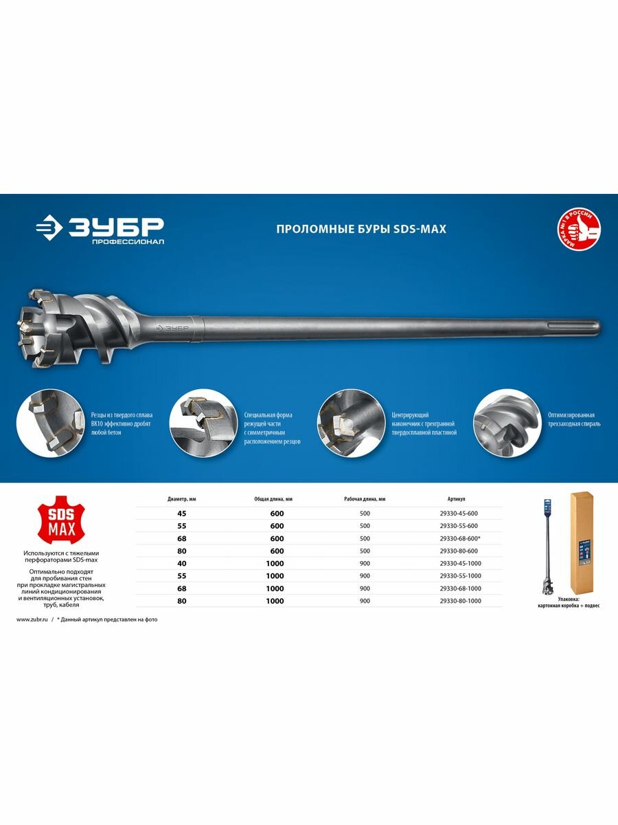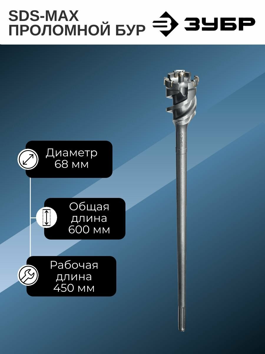 ЗУБР Профессионал 68 х 500/600 мм, SDS-max проломной бур ()