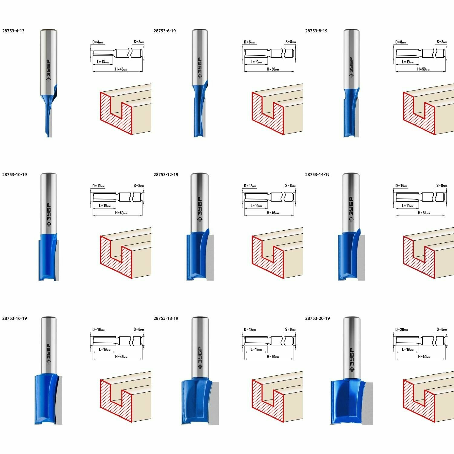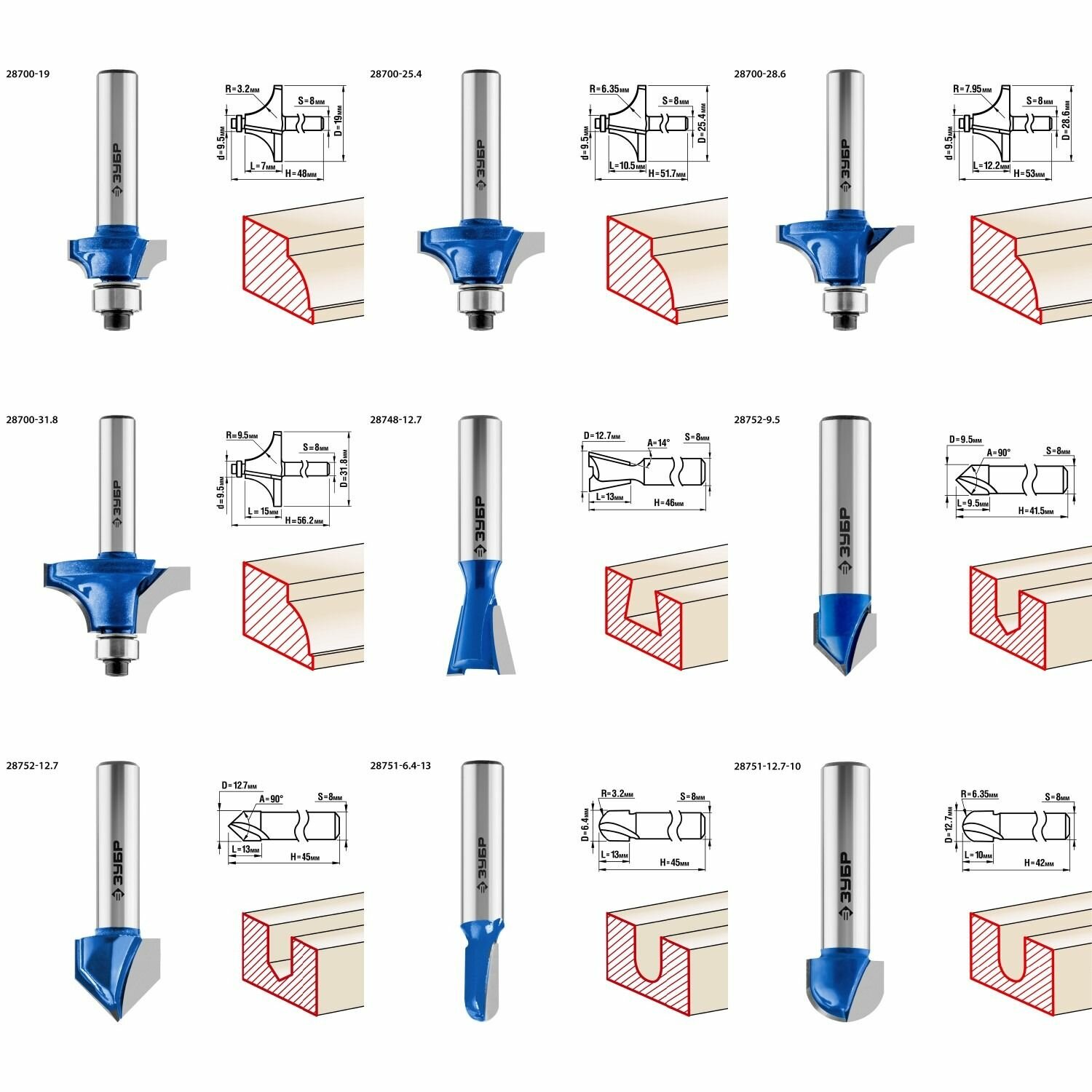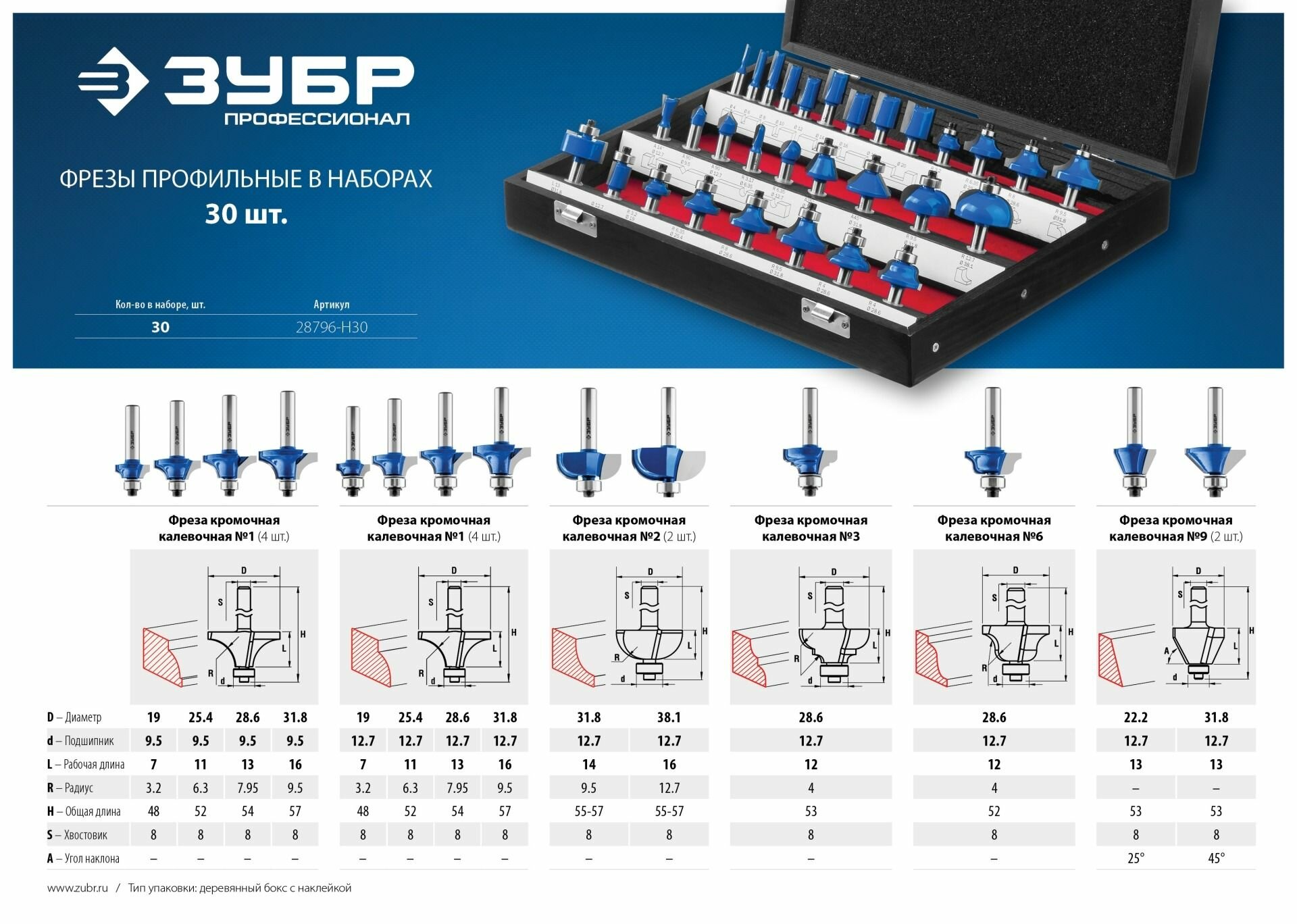 Набор фрез по дереву ЗУБР 28796-h30