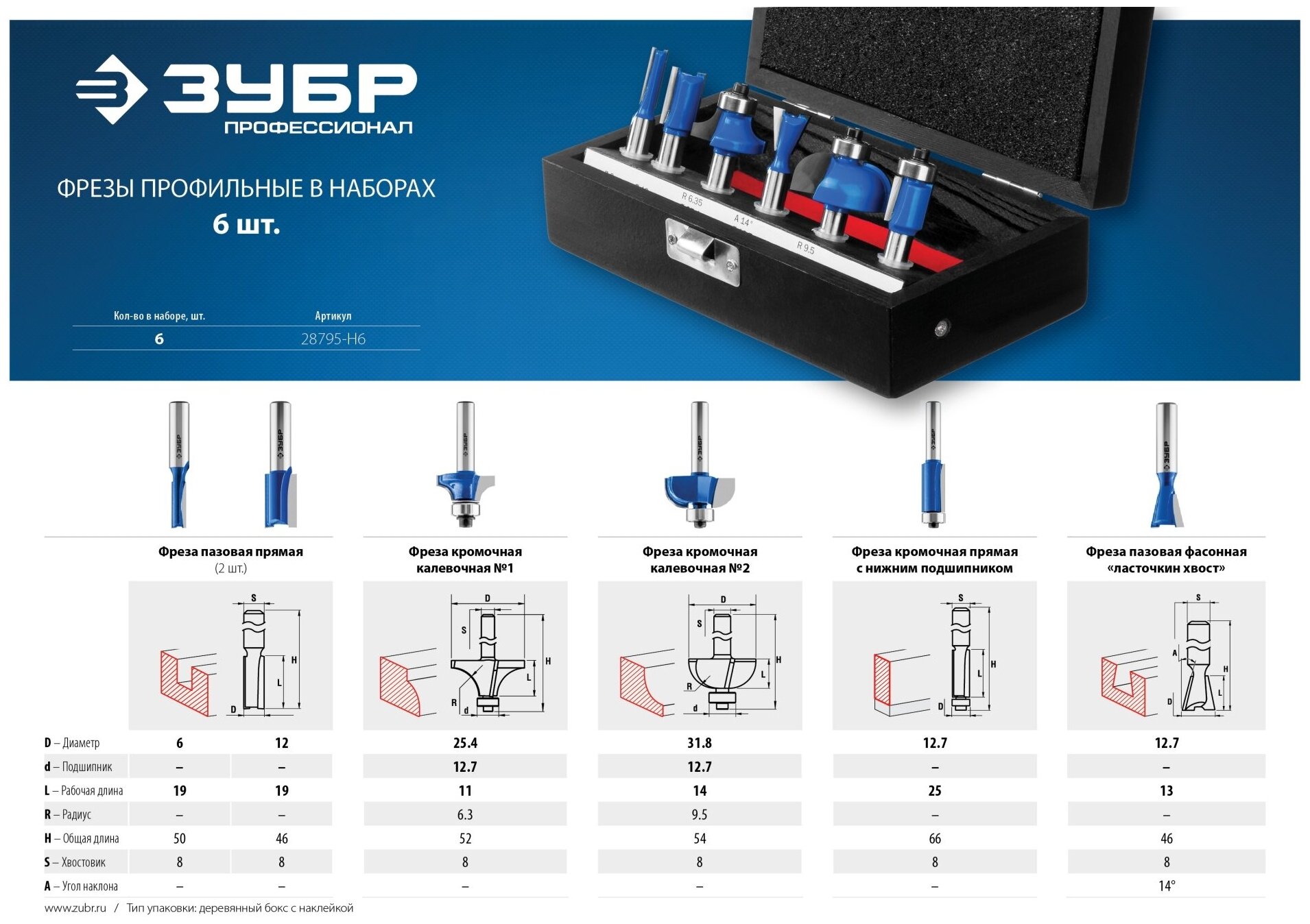 | Наименование модели | Набор профильных фрез ЗУБР 28795-H6 |