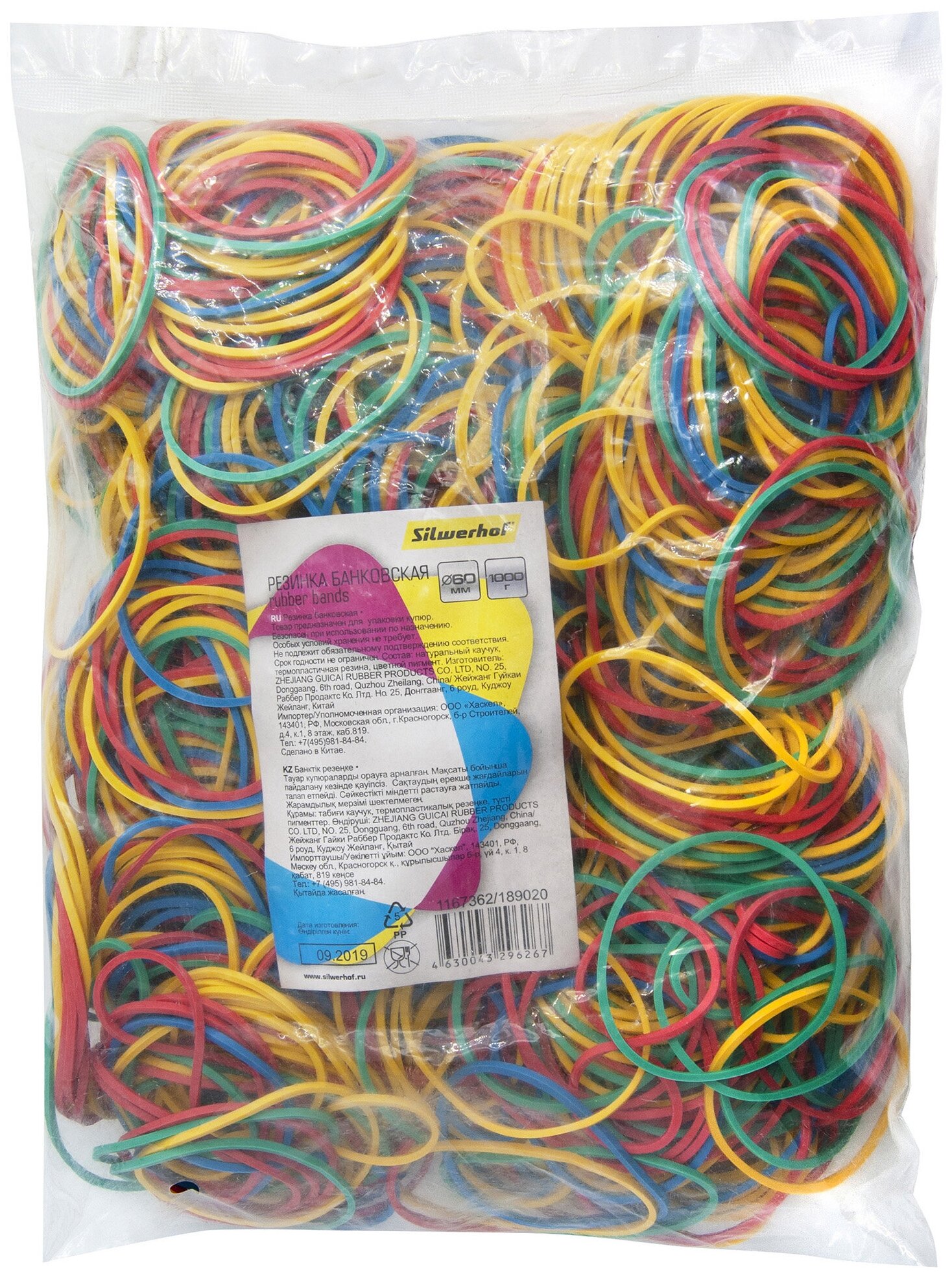 Резинки для купюр Silwerhof ассорти, диаметр 60мм, ширина 2мм, пластиковый пакет, вес упаковки 10000гр