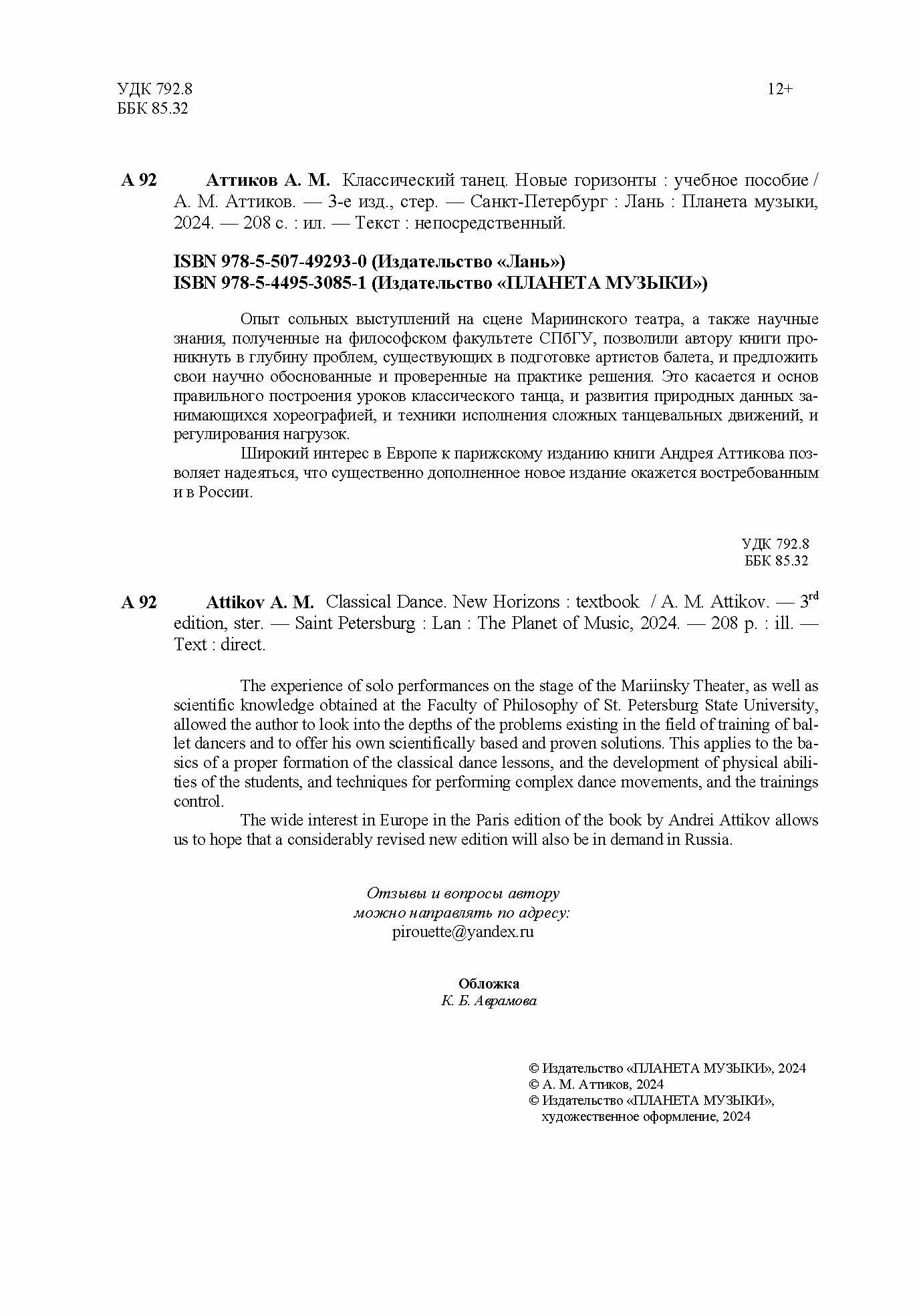 Классический танец. Новые горизонты. Учебное пособие (Андрей Аттиков); Издательство «Планета музыки», 2020