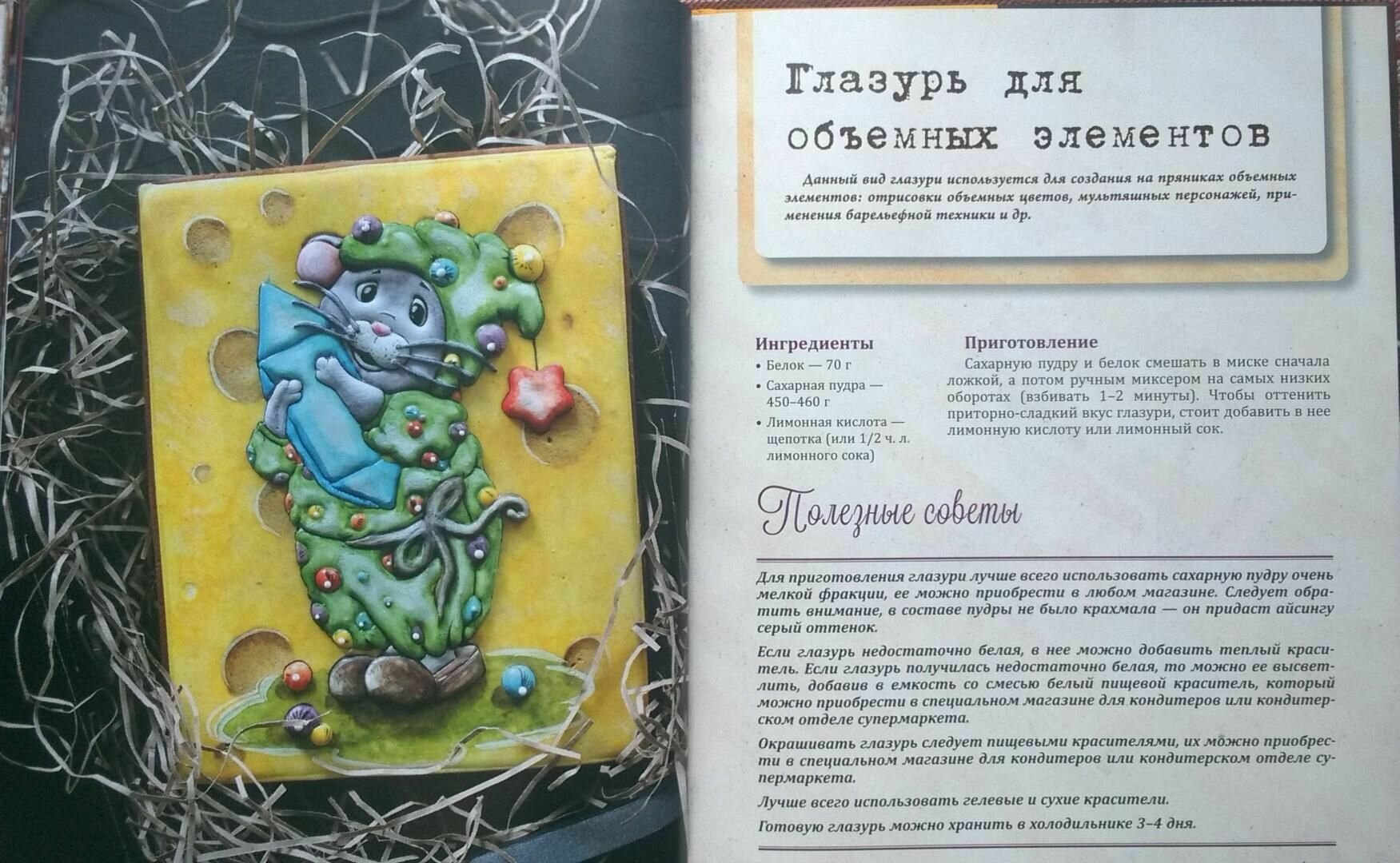 2. Очень много про роспись пряников айсингом, это действительно полезно, но мне не понравилось не соответствие более крупной картинки к способу нанесения рисунка, который показан более мелкими иллюстрациями "где-то сбоку".