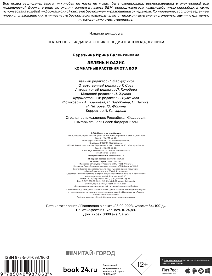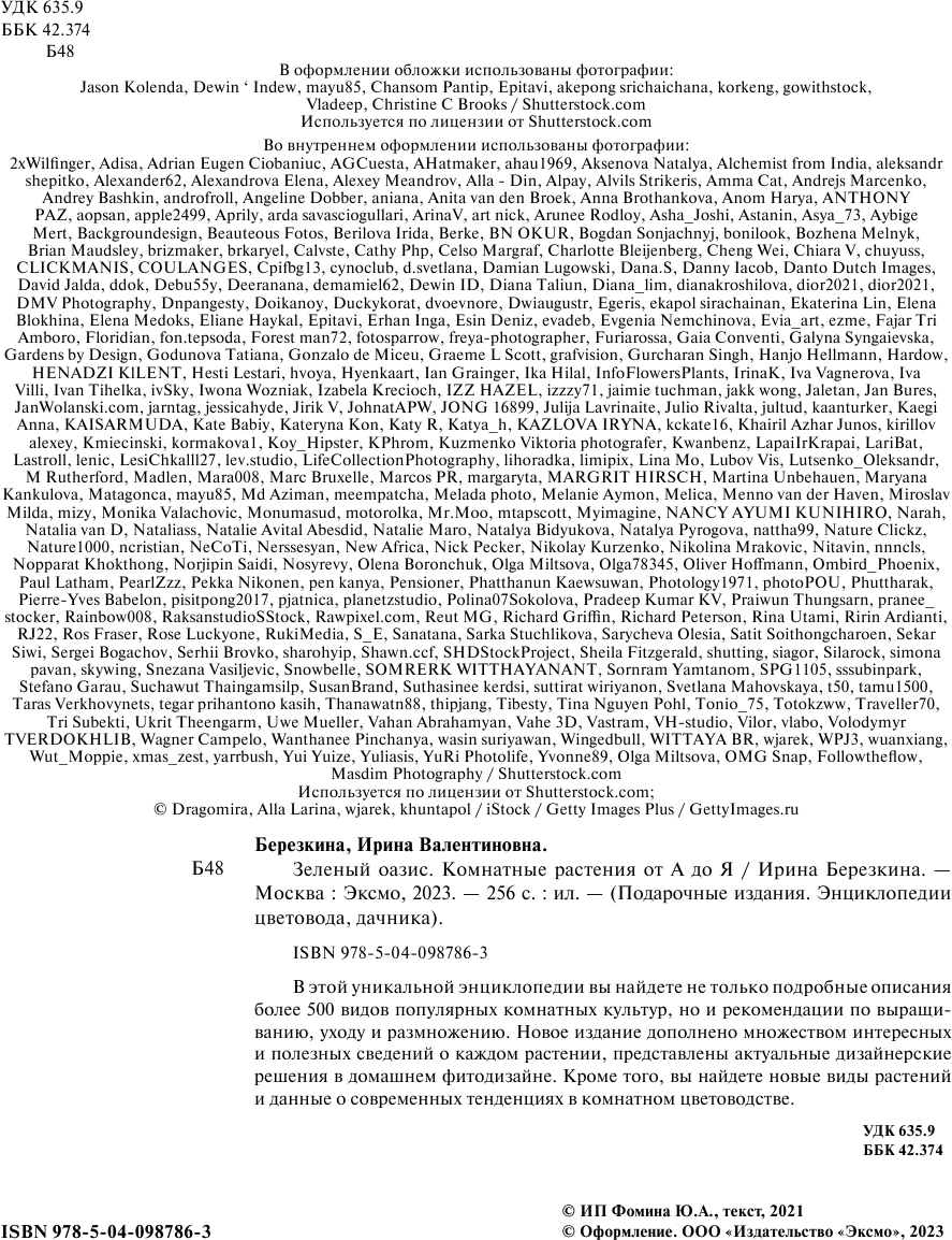 Зеленый оазис. Комнатные растения от А до Я (Березкина Ирина Валентиновна); ООО "Издательство "Эксмо", 2020