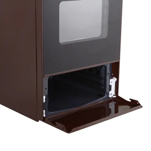 Газовая плита Flama – классический модель, которая включает в себя 4 внешних конфорки на горизонтальной поверхности, а также газовый духовой шкаф. Оборудование исполнено в коричневой цветовой гамме, материалом послужила эмалированная сталь. Конструкция газовой плиты предусматривает в нижней части отделение для хранения посуды и иной кухонной утвари. Сверху газовые конфорки накрываются стальной крышкой.