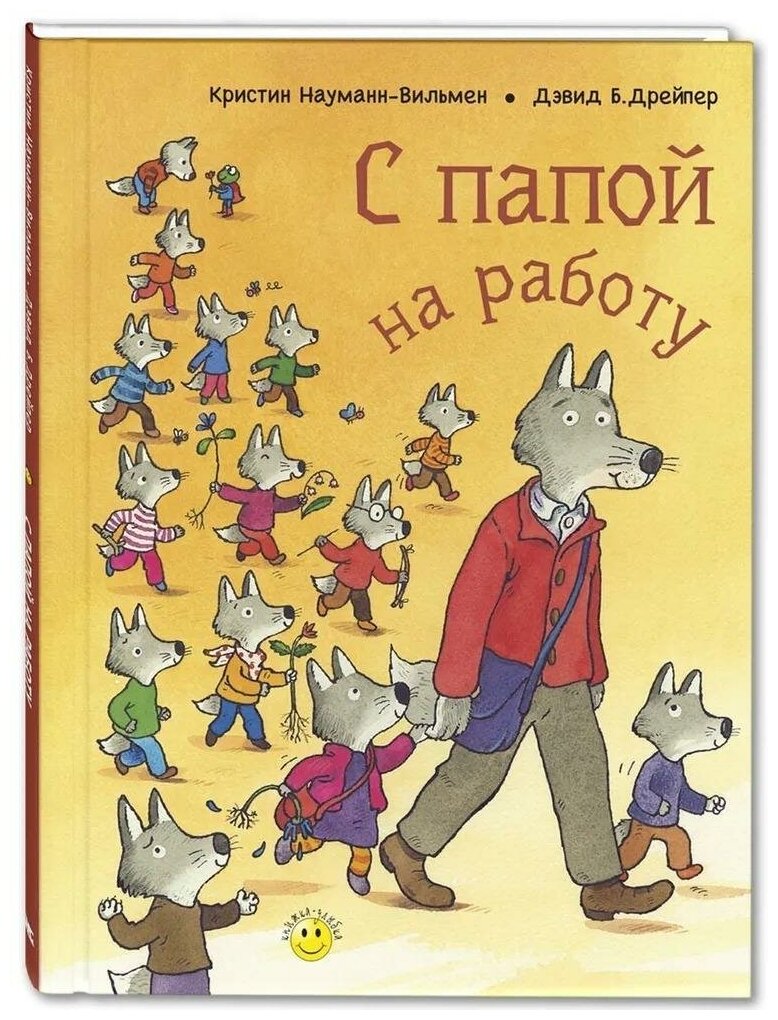 В какой-то момент я была поставлена в тупик истериками трёхлетнего сына, не желавшего отпускать папу на работу... Решила купить пару книг на эту тему, в том числе и "С папой на работу". Мы с сыном увидели забавную историю, переделанную сказку про трёх поросят или вариацию, а что было бы, если б на охоту за тремя поросятами волк взял с собой детей. Вышла хорошая разрядка ситуации, забавные моменты, красочные иллюстрации, с удовольствием перечитываем книгу