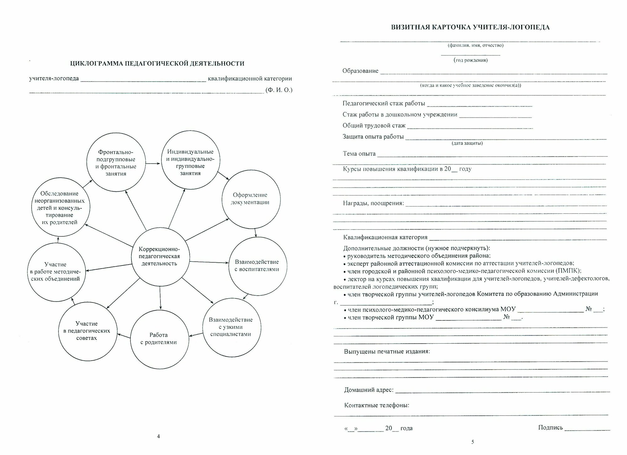 .Формат дневника с предложенными образцами для заполнения (графики, планы, речевые карты, визитная карточка, творческий отчет) позволит логопеду оперативно справиться с оформлением нормативной и организационно-методической документации по учету деятельности и отчетности в условиях введения федеральных государственных требований к структуре ДОУ.