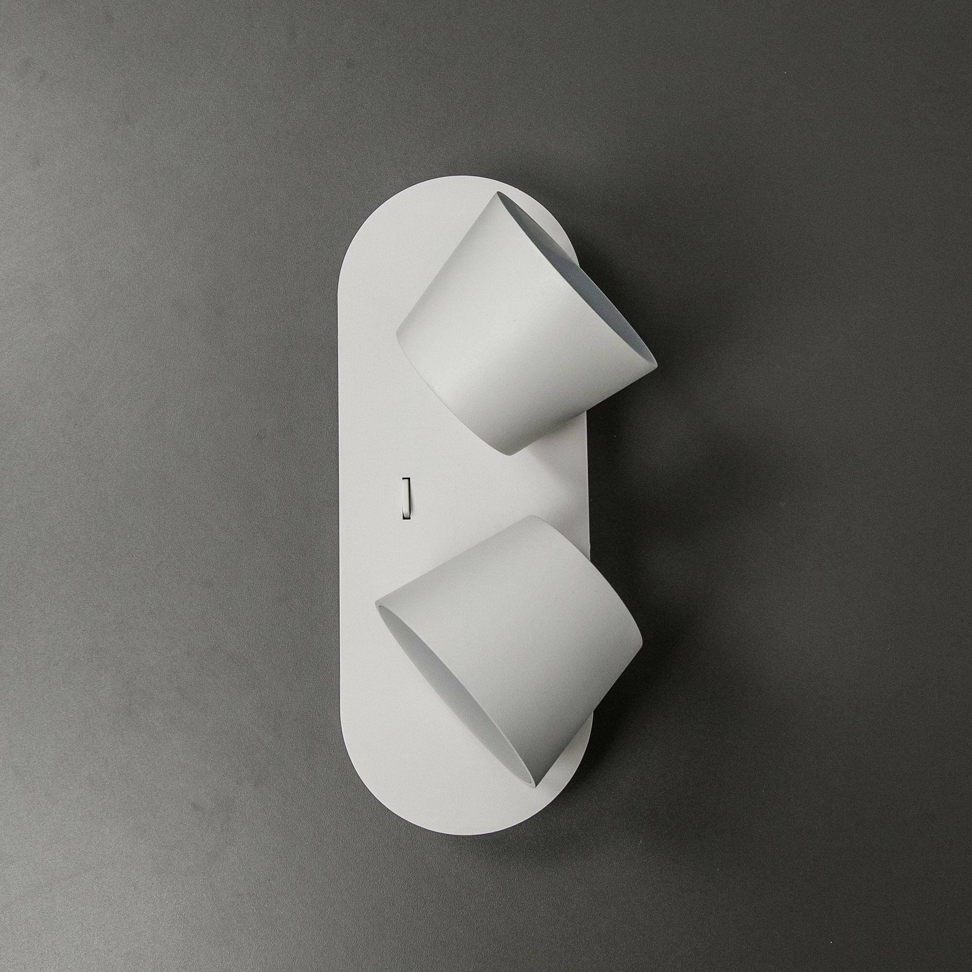 Сдвоенный настенный светильник Норман послужит достойным завершающим акцентом в интерьере, оформленном в стиле модерн. Крупные конусные плафоны оборудованы поворотным механизмом: это дает возможность менять световую картину в помещении по своему усмотрению. Источники света — встроенные в конструкцию светодиоды с цветовой температурой 4000 К #40;естественный, мягкий белый свет, приятный для глаз #41;. На элегантном овальном основании расположен удобный кнопочный выключатель, что делает прибор еще более удобным в использовании.
