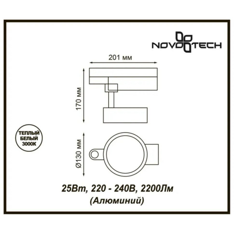 Трековый светодиодный светильник - продукт известной компании Novotech (Венгрия). Имеет максимальную мощность 25 Вт, освещает площадь до 5 кв. м. Отлично подойдет для таких мест, как гостиная, прихожая и коридор, кафе, холл, спальня, кухня, офис, магазин. Впишется в интерьеры следующих стилей: хай-тек, техно.