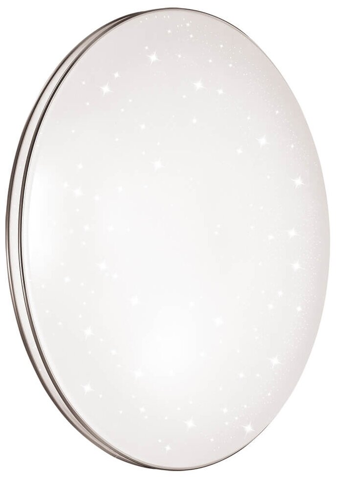 Основание светильника из металла удачно дополняет рассеиватель из белого акрила с глянцевым покрытием. Такое исполнение обеспечивает прибору равномерное рассеивание и отличное светопропускание. Наличие прозрачных точек на плафоне при включенном свете создает красивый эффект звездного неба. Источником света выступает LED-модуль 48 Вт с цветовой температурой 4000 К.