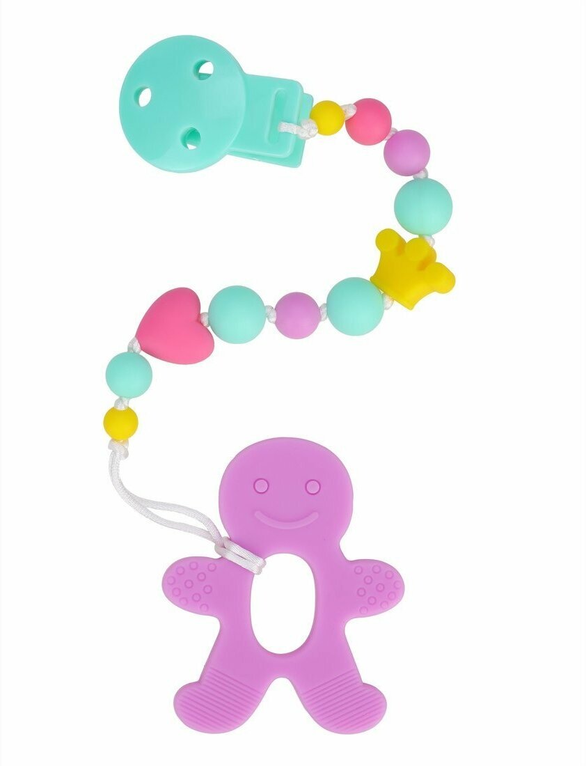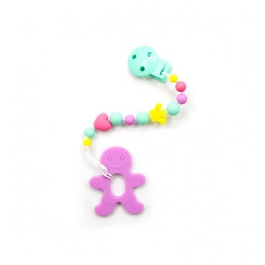 Грызунок «Пряничный человечек» сделан из безопасного пищевого силикона, он выполняет роль прорезывателя для зубов. Бусины грызунка достаточно мягкие и очень приятные на ощупь. Бусины и грызунок можно жевать и грызть - они не деформируются. В период прорезывания молочных зубов малыш особенно нуждается в массаже дёсен. Грызунок как раз и обеспечит такой массаж, снимет зуд и значительно облегчит сам процесс прорезывания. С помощью специальной прищепки грызунок можно прикрепить к одежде ребёнка, тогда кроха не уронит грызунок на пол, и он всегда будет под рукой. Подвеску можно снять и прикрепить соску.Сам грызунок и яркие бусины обязательно понравятся малышу и надолго привлекут его внимание, поэтому дома, в гостях или в поликлинике, на ручках у мамы или в детском кресле, маленькому непоседе всегда будет чем заняться и времени на капризы у него не останется. Длина изделия составляет 30 см. Изготовлено из пищевого силикона с элементами текстильных материалов. Рекомендованный возраст: 0 мес. +