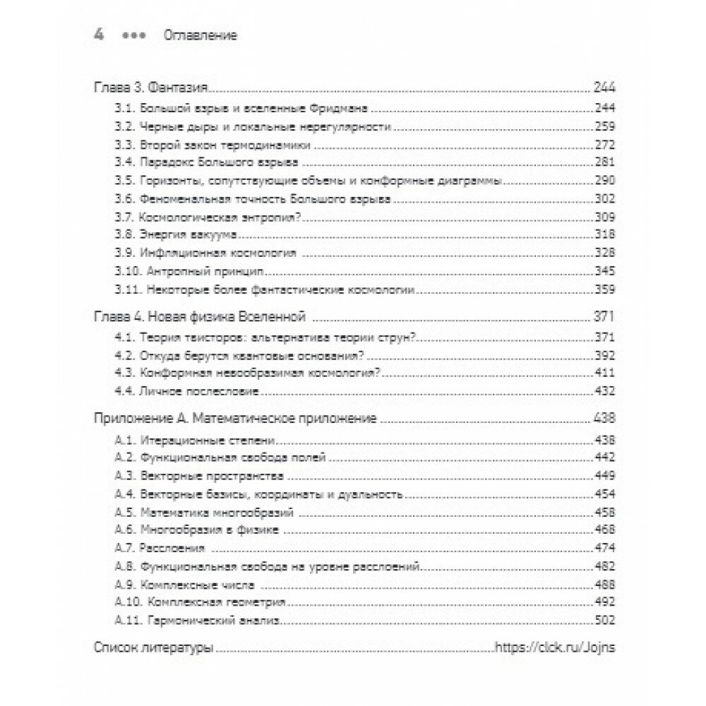 Ремикс на тему книги «Путь к реальности», если не сказать, авторская реплика. Многие рисунки и абзацы копируются из «Пути к реальности» целиком (струны, диаграммы Фейнмана, …). Однако, в отличие от той книги изложение ведется в большей степени на пальцах, меньше стало выносных формул. Если «Путь к реальности» – широкое полотно современных направлений математики и теоретической физики, то тематика настоящей книги сужена до рассмотрения трех основных направлений – струны, квантовая физика и космология, плюс продвижение собственных концепций автора – твисторы. Соответственно, и объем сократился раза в два. Зато учтены новые достижения за прошедшие между публикациями этих книг 12 лет, в том числе выстроенная самим Пенроузом теория конформной циклической космологии.