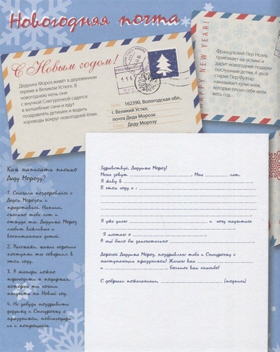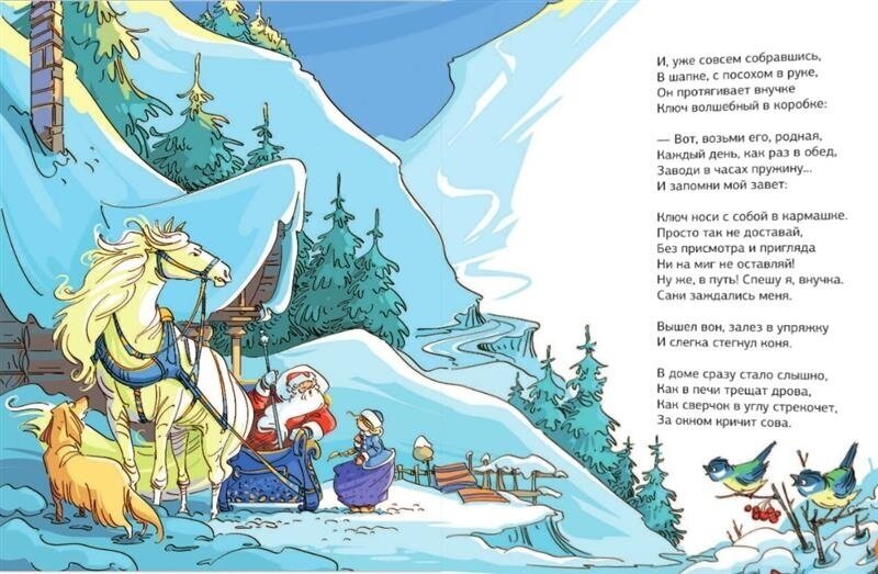 Очень интересная книга большого формата. Прочитав ее детям, сразу появляется новогоднее настроение и вера в чудеса. Яркие и атмосферные картинки. В книжке еще есть развивающая игра-лабиринт и образец письма деду морозу. Текст написан крупным шрифтом, поэтому ребенок может и сам читать эту книжку. Всем советую