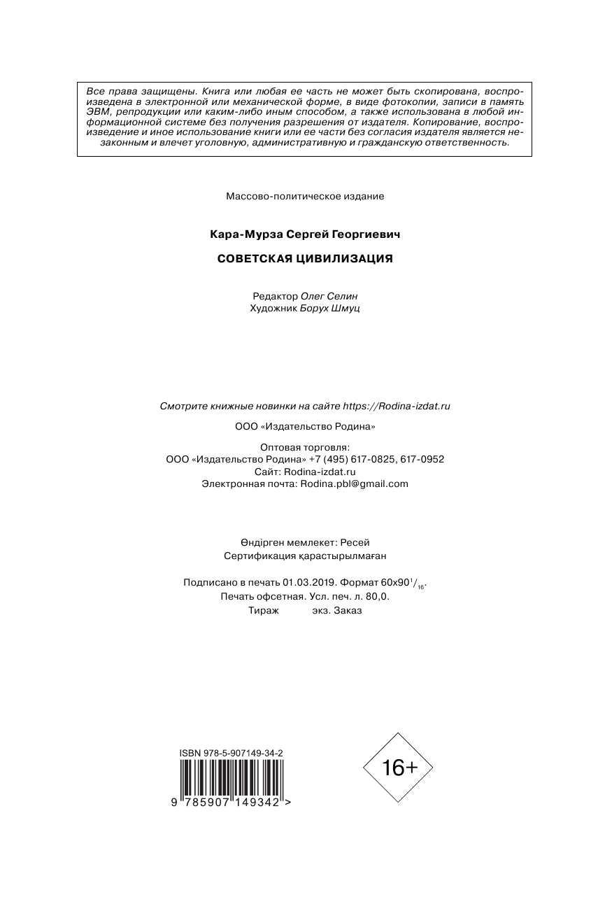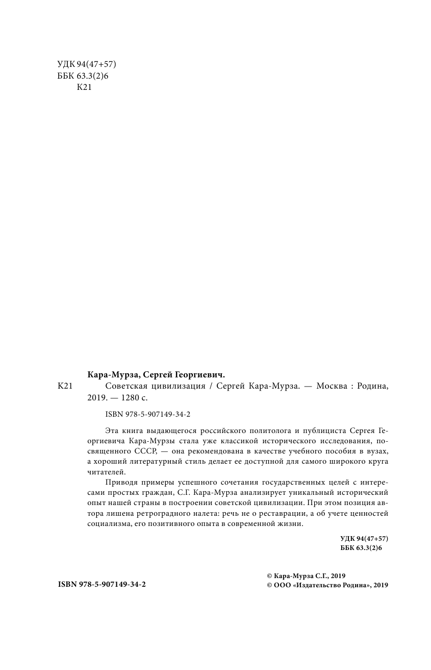 Книга: Советская цивилизация (Сергей Кара-Мурза); Родина, Редакция 1, 2019