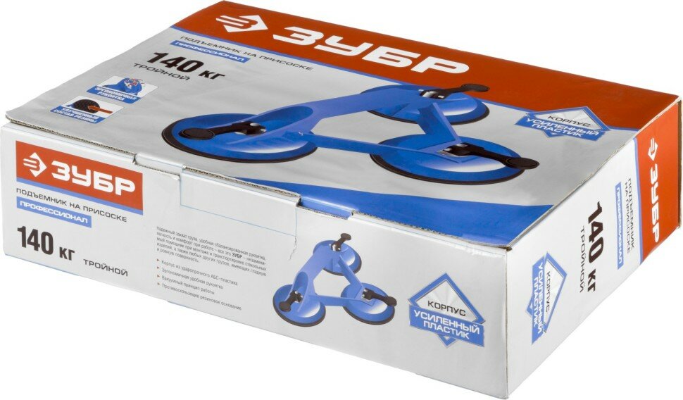 Надежный захват груза, удобная сбалансированная рукоятка и комфорт при работе - все это стеклодомкрат ЗУБР ПРОФЕССИОНАЛ - незаменимый помощник при монтаже и транспортировке стекольных изделий, а также других грузов, имеющих гладкую поверхность. Он основан на вакуумном принципе работы, имеет противоскользящее резиновое основание и эргономичную рукоятку.