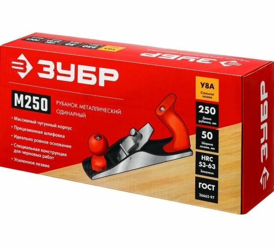 Рубанок ЗУБР 18501-25_z01, предназначен для первичного грубого ручного строгания пиленых поверхностей древесины или после обработки шерхебелем. Корпус из высококачественного серого чугуна с прецизионной обработкой. Рубанки изготовлены по ГОСТ 26665-97. Корпус из высококачественного серого чугуна. Нож из высококачественной стали марки У8А по ГОСТ 1435 закалено до HRC 53-63. Обеспечивает длительный срок службы и возможность многократной доводки лезвия.
