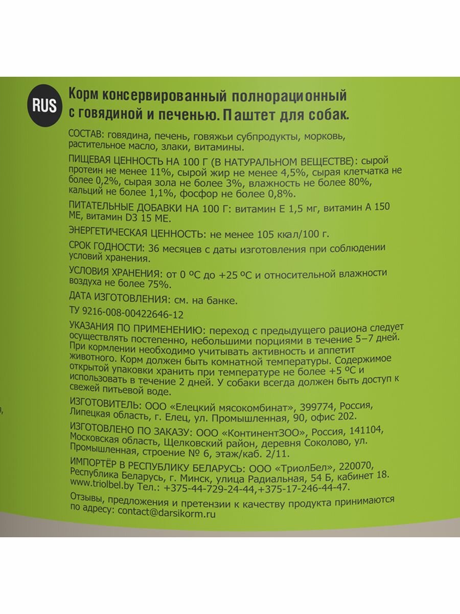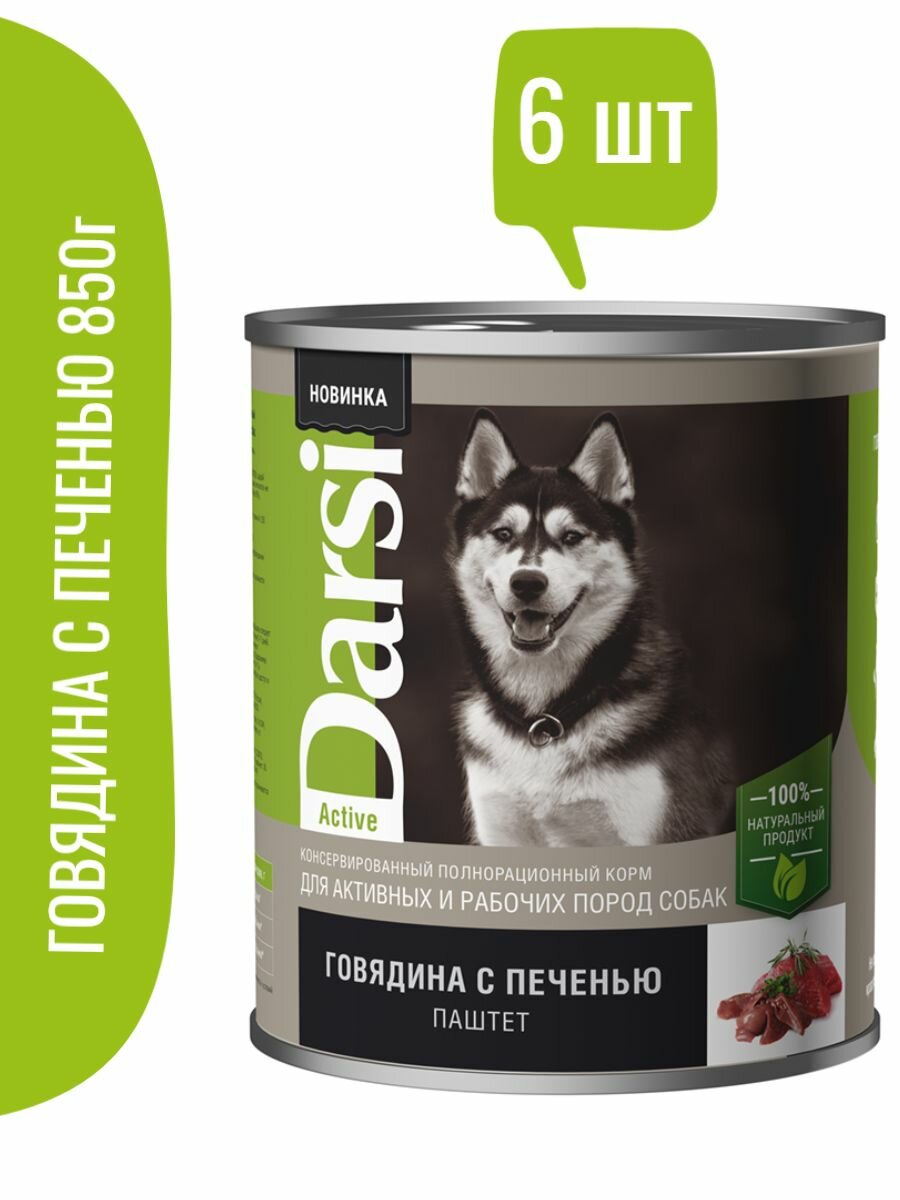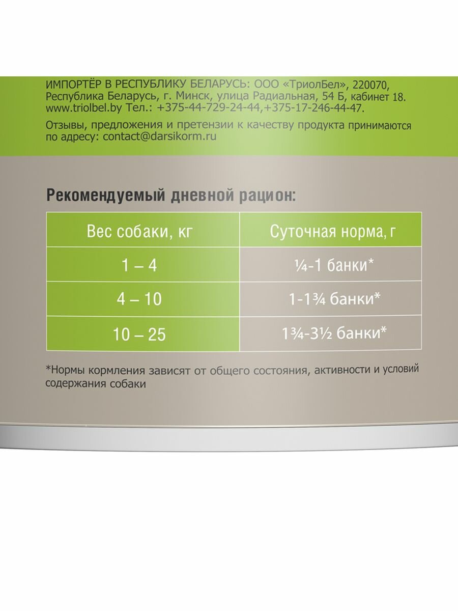 Влажный корм для собак Darsi Говядина и печень 085 кг
