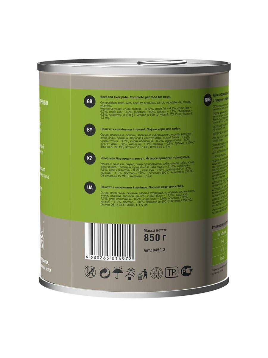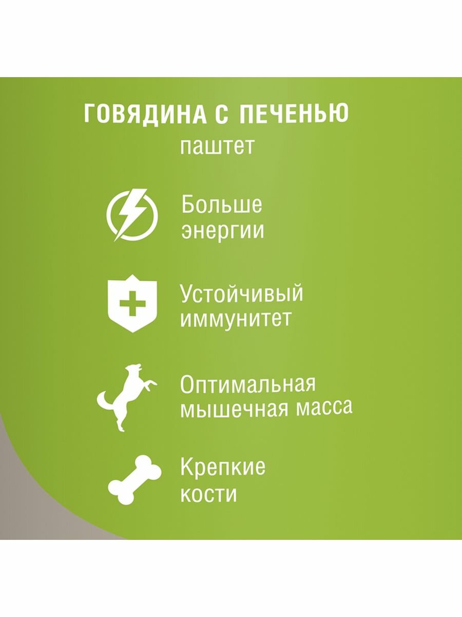 Консервы в виде паштета для активных и рабочих собак Говядина с печенью.