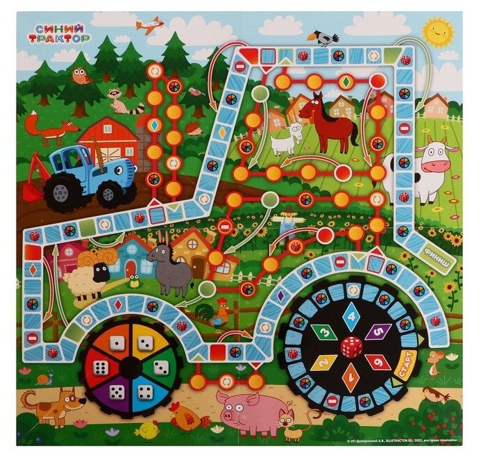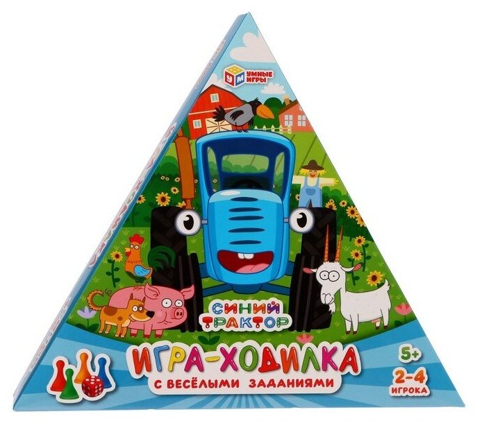 Развивающая настольная игра-ходилка «Синий трактор» ТМ «Умные игры».Встречайте весёлую и яркую настольную игру, которая увлечёт ребёнка. Она создана по сюжету мультсериала «Синий трактор»: на игровом поле любимые персонажи мультфильма ждут игроков. Играрайте вместе с ребёнком или же он может пригласить друзей сыграть вместе.Игра «Синий трактор» ТМ «Умные игры» 4 в 1:— Весёлая настольная игра-ходилка в стиле мультфильма,— Универсальная и компактная: для игры дома, в гостях, в путешествии,— Для 2-х — 4-х игроков,— Учит ребёнка счёту.Комплектация:— Удобная коробка с изображениями персонажей мультфильма + инструкция,— Кубик,— 4 Разноцветных фишки игроков.Размеры упаковки игры: 33 * 22 * 3 см.Материал: картон.Рекомендуем длядетей от 3-х лет.