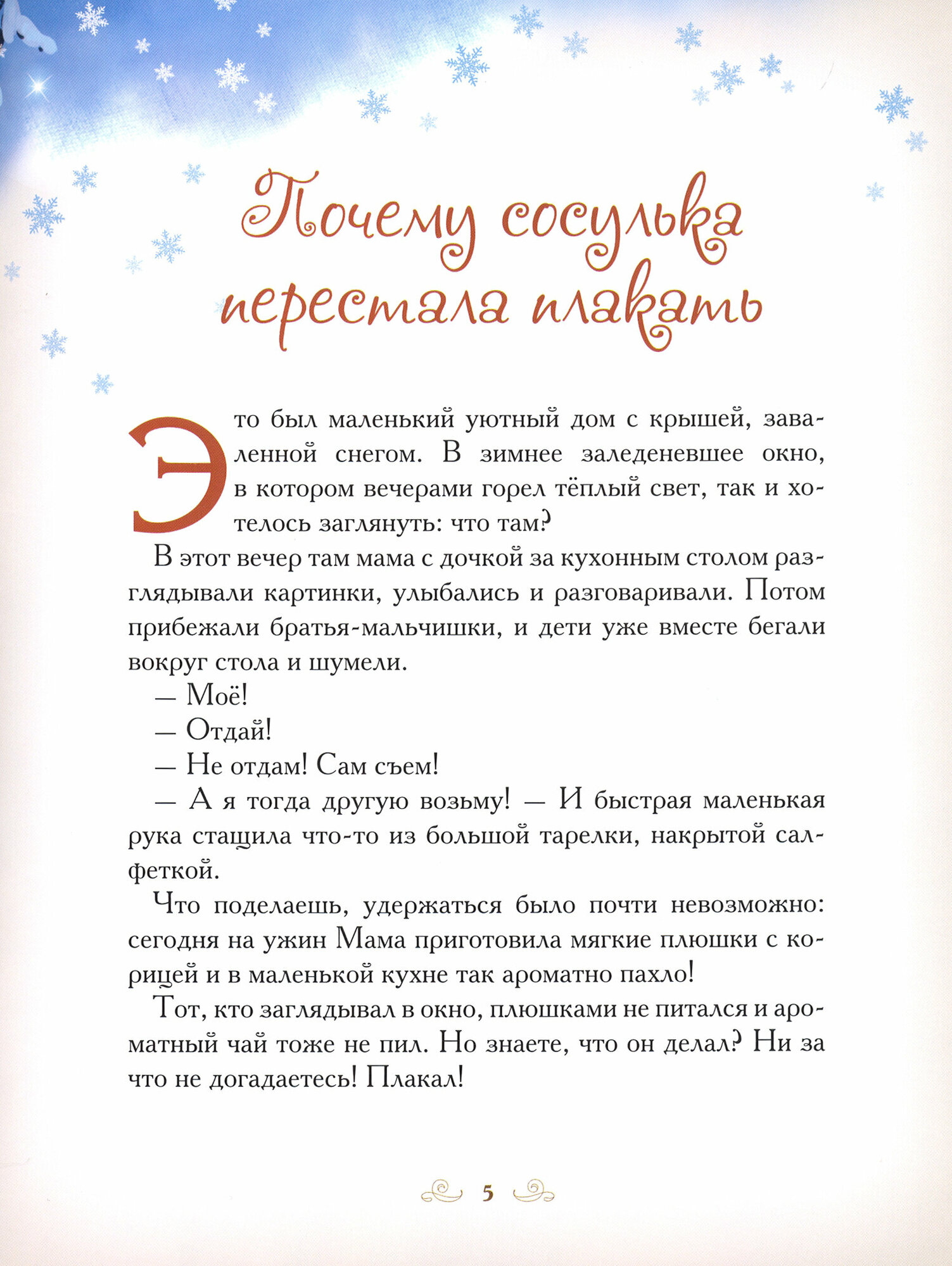 Собранные в этой книге зимние сказки станут украшением новогодних каникул. Сказка о коварной Спичке, которая чуть не испортила праздник, история о приключениях двух шарфов и настоящей дружбе и рассказ о печальной Сосульке, которая научилась радоваться. Добрые и красочные истории сделают зимние дни теплее и ярче.