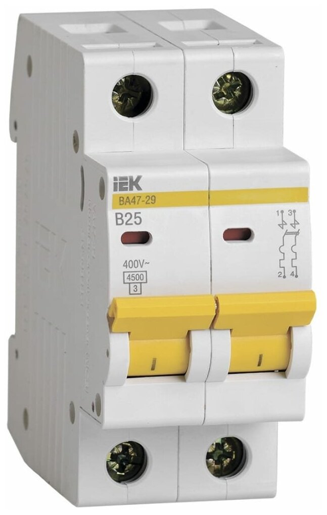 ВА47-29 MVA20-2-025-B Автоматический выключатель двухполюсный 25А (4.5 кА B) Упаковка (6 шт.) IEK