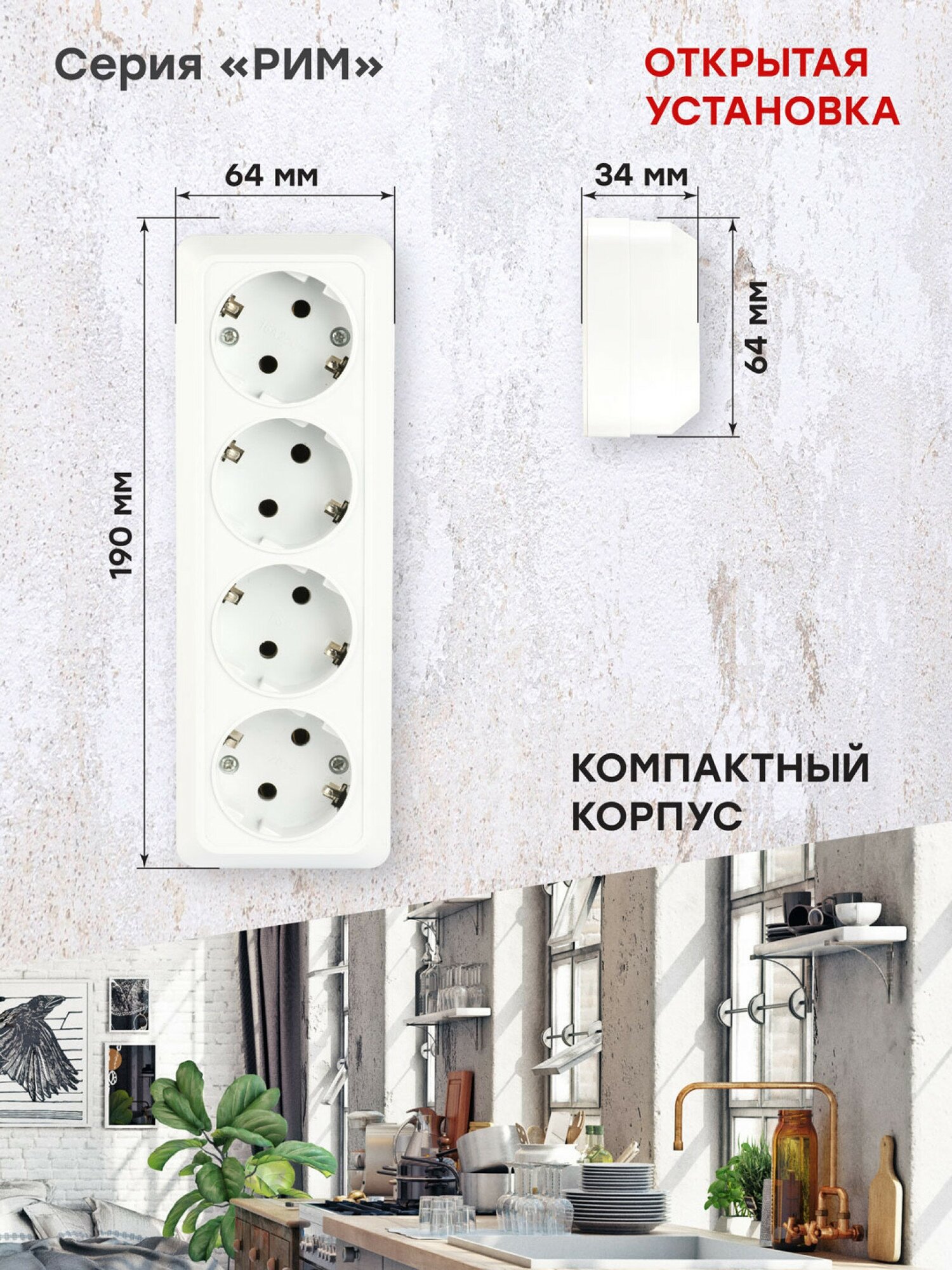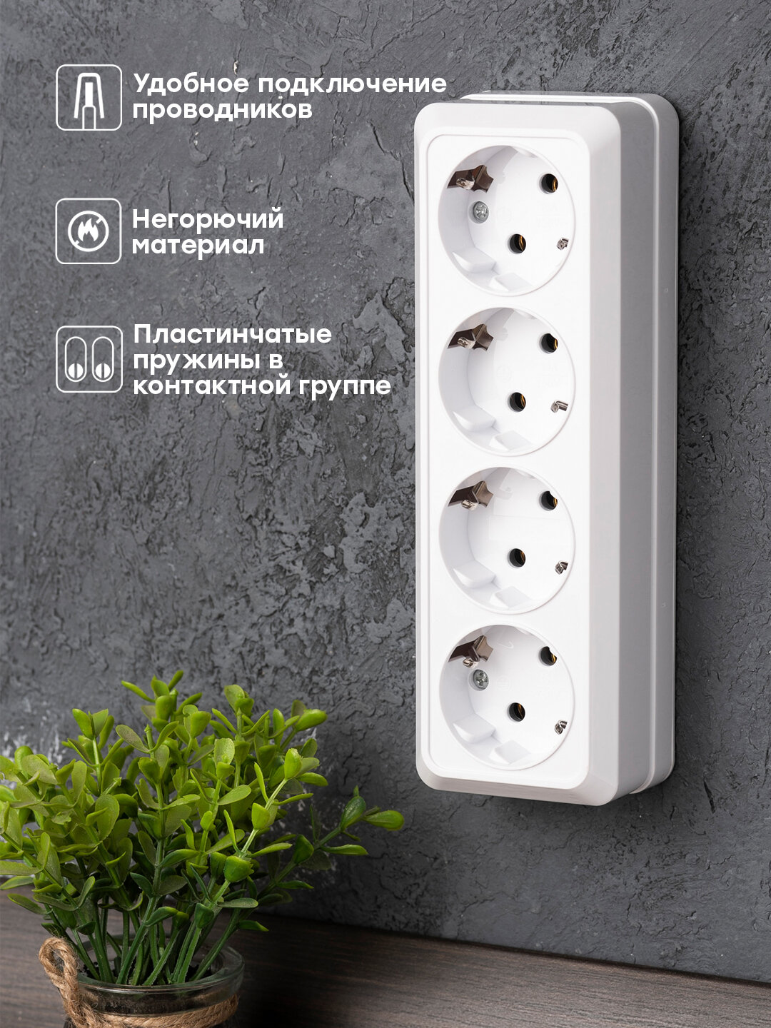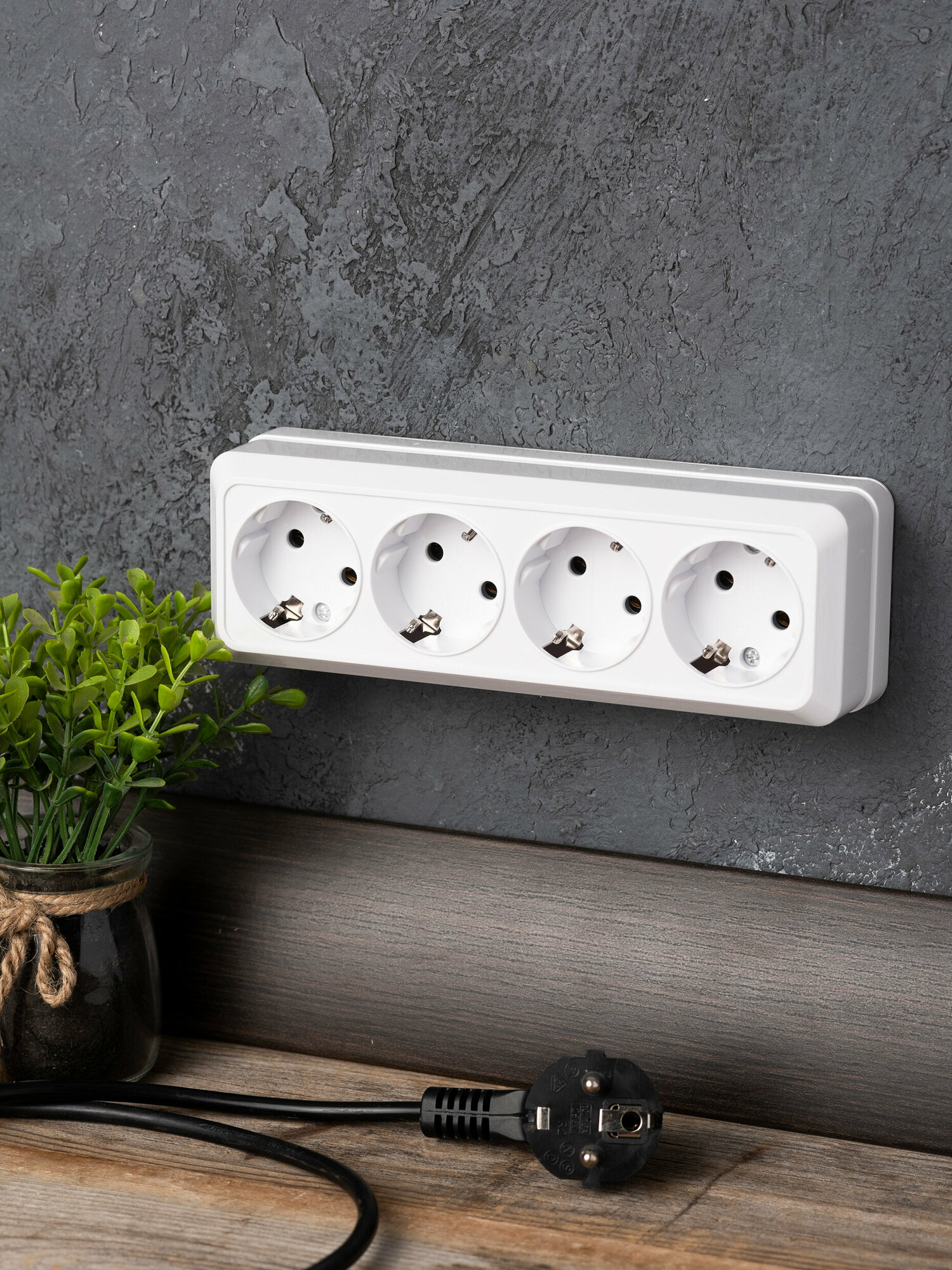 Сервис сравнения цен СкидкаГИД предлагает сравнить цены на товар «ENR16-328-10 Рим Розетка 4-местная 16А с заземлением белая EKF»