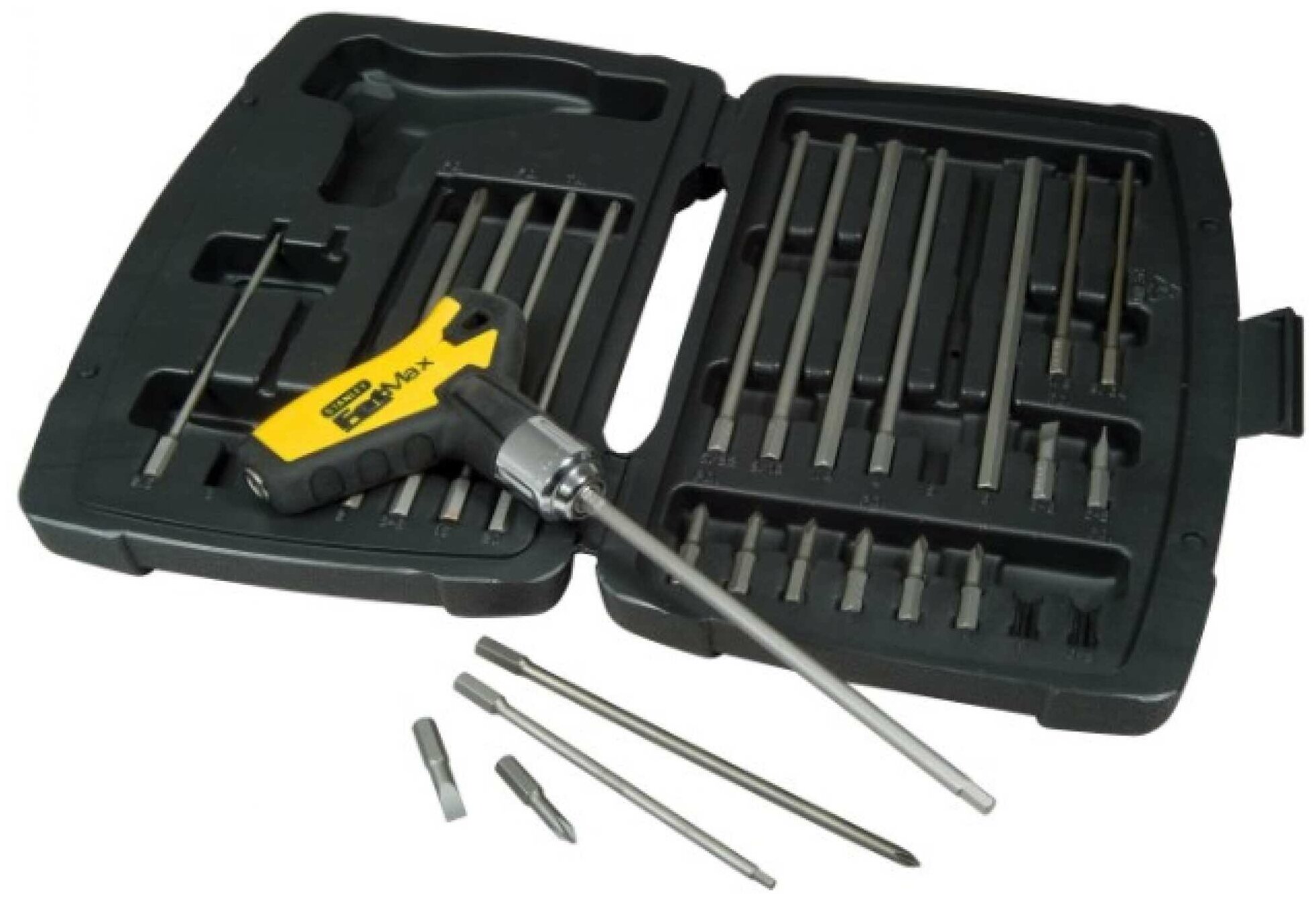 Отвертка со вставками FATMAX 27 предметов в футляре Stanley 0-79-153 является многофункциональным инструментом для монтажа и демонтажа резьбовых соединений. Комплект состоит из Т-образной рукоятки с храповым механизмом и 27 насадок с различными шлицами.