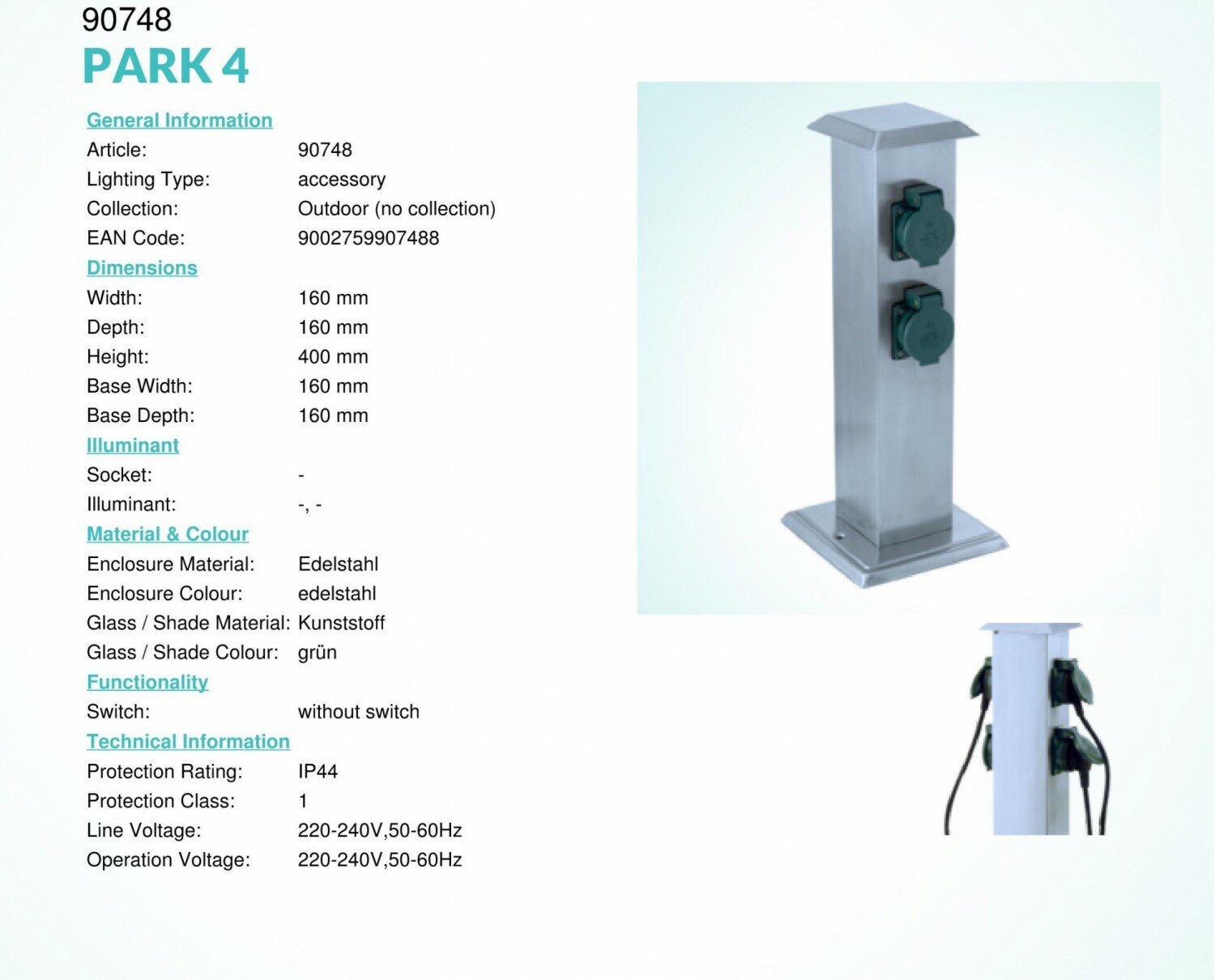 Электротовары Eglo серии PARK 4. Будет хорошим решением для квартиры. Размеры 11x11x40 cm. Параметры пылевлагозащиты IP — 44. Плафон пластиковый зеленый. Идеально подходит на улицу. Страна происхождения бренда — АВСТРИЯ.