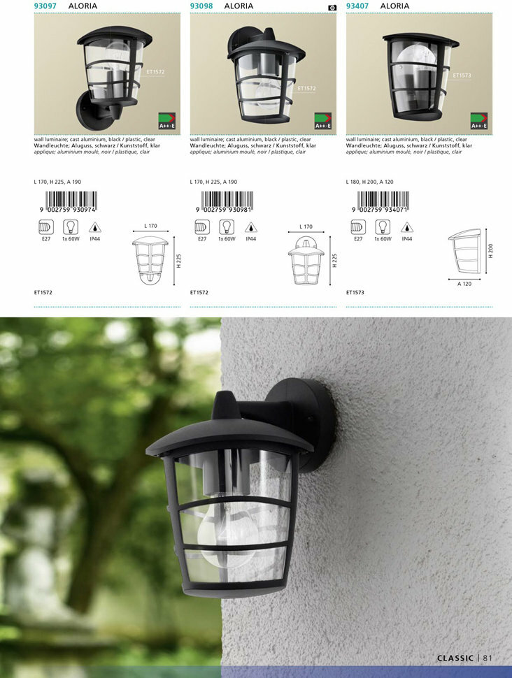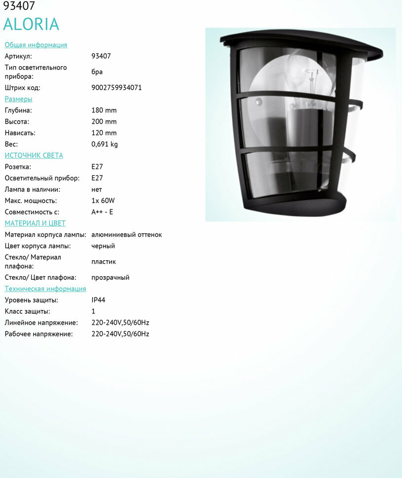 Бра Aloria - продукт известной компании Eglo (Австрия). Имеет максимальную мощность 60 Вт, освещает площадь до 3 кв. м. Отлично подойдет для таких мест, как кухня, прихожая и коридор. Впишется в интерьеры следующих стилей: современный.