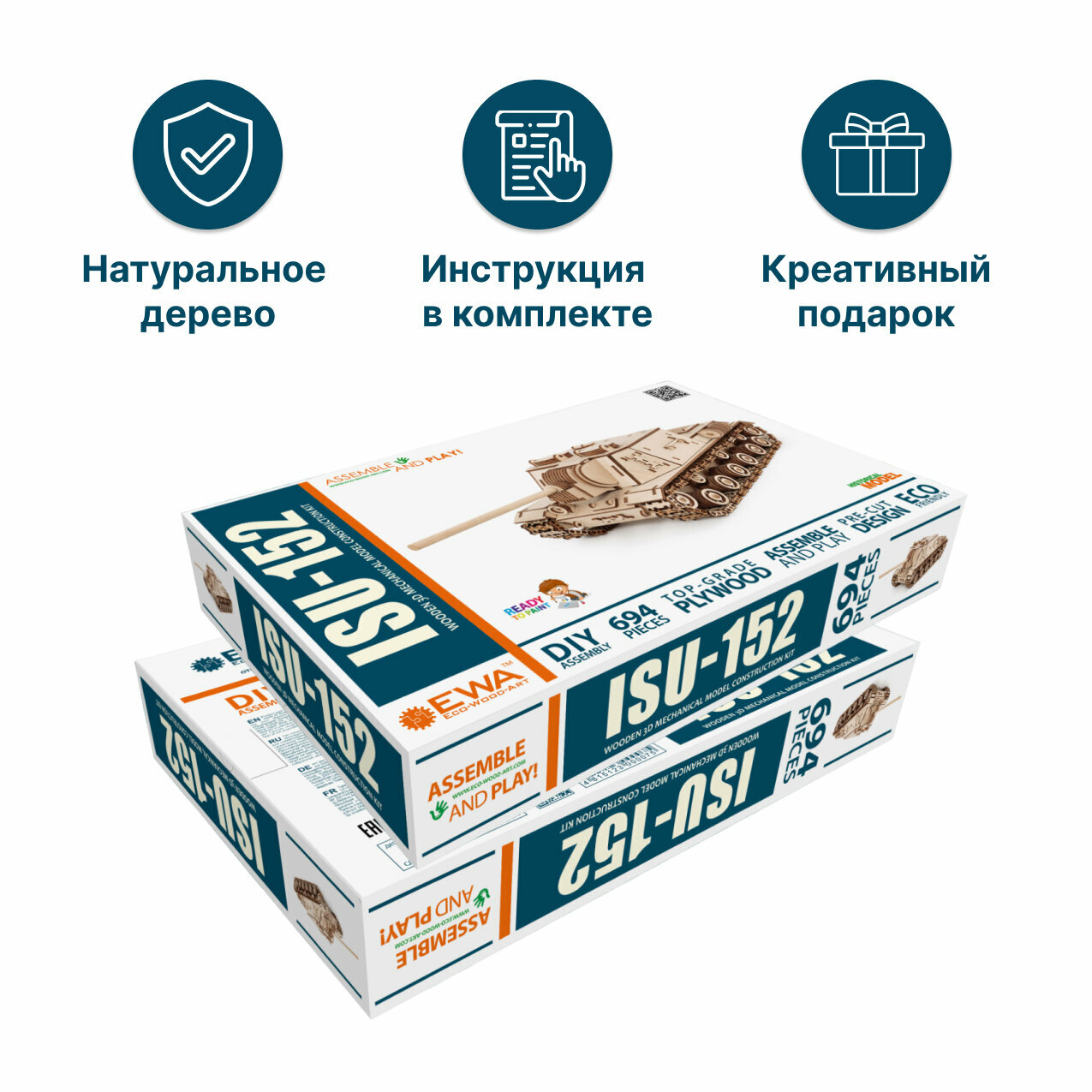 Конструктор деревянный 3D EWA Eco Wood Art Танк ИСУ-152 694 деталей Конструктор 3D EWA Танк ИСУ-152