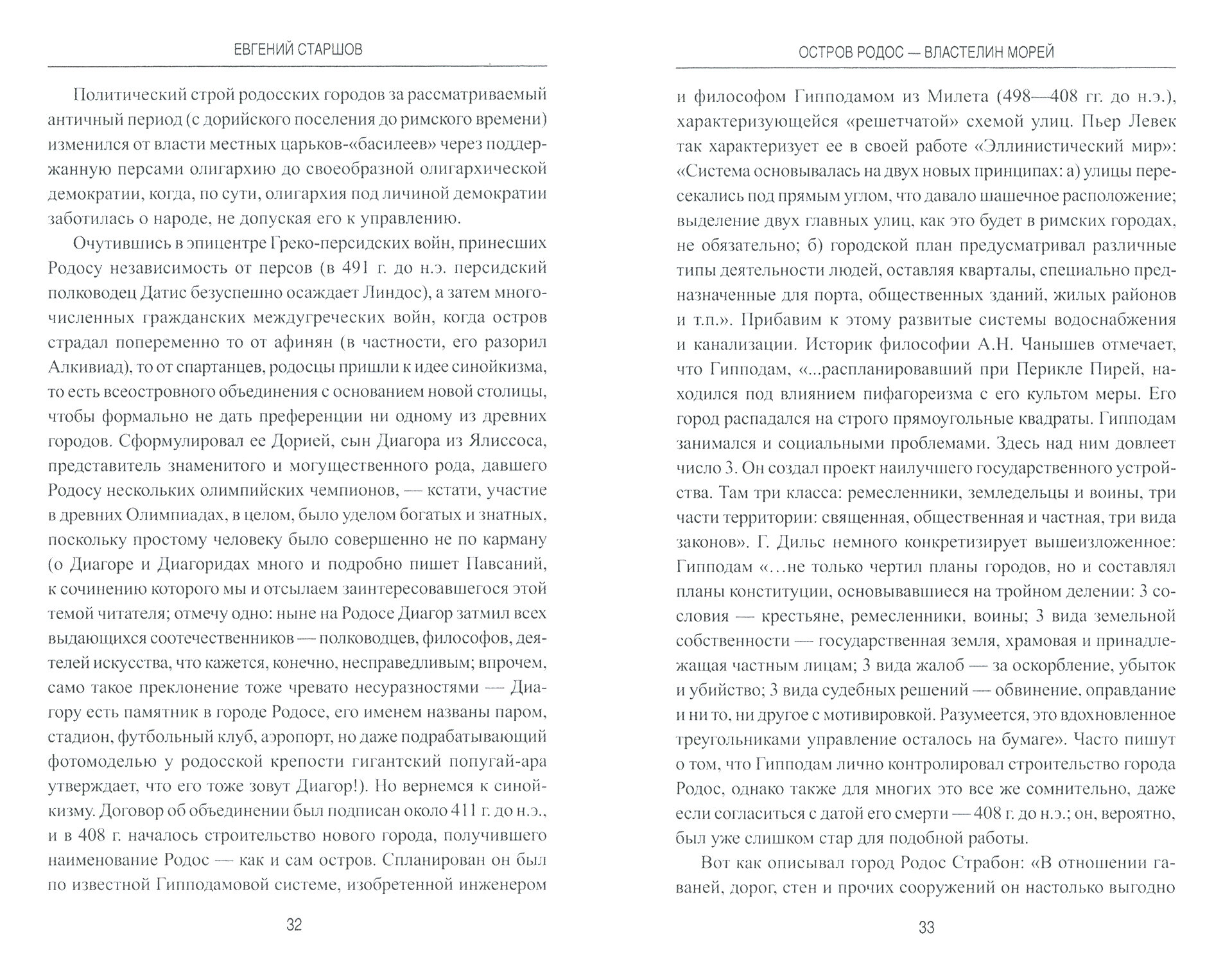 Это очень неплохой обзор истории Родоса со времён Ахейской Греции, который может отчасти служить путеводителем. Язык живой, доступный, читается легко. Илюстраций хотя и относительно мало, но они достаточно качественные, нередко авторские.