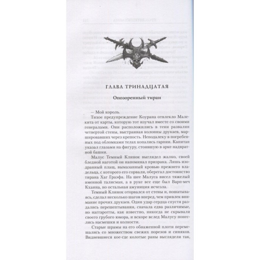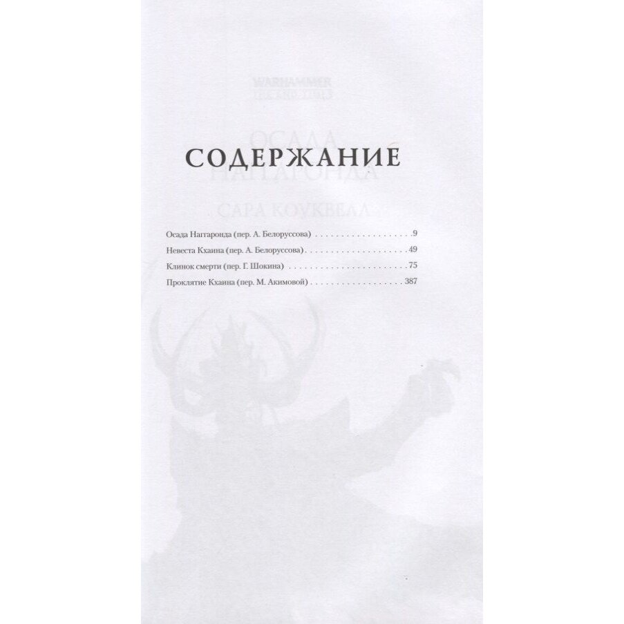 Клинок смерти Это заняло десятки лет, но с помощью заговоров, интриг и убийств Малус Темный Клинок проложил себе путь к власти. Он наконец стал правителем Хаг Грэфа и генералом армии Короля-Колдуна Малекита. Но положение Малуса оказывается под угрозой, когда Малекит отправляет всех на штурм Ултуана, а Темному Клинку приказывает возглавить авангард. И пока Малус ведет войну с высшими эльфами, он должен решить, кому принадлежит его верность. Будет ли он следовать за Малекитом до самой смерти? Или восстанет и попытается сам занять трон Наггарота? И в любом случае выживет ли он? Проклятие Кхаина Наггарот осажден ордами Хаоса, и Король-Колдун Малекит принимает решение покинуть Страну Холода и предпринять последнюю попытку захватить трон Ултуана. Пока друкаи вновь маршируют по родному краю, начинают приносить плоды давно задуманные планы и расцветает предательство, приближая Малекита к его цели. Единственный стоит на пути Короля-Колдуна - регент Ултуана, принц Тирион. Он и тьма в душе самого Малекита, зов проклятия Кхаина. В сборник также включены рассказы "Осада Наггаронда" и "Невеста Кхаина".