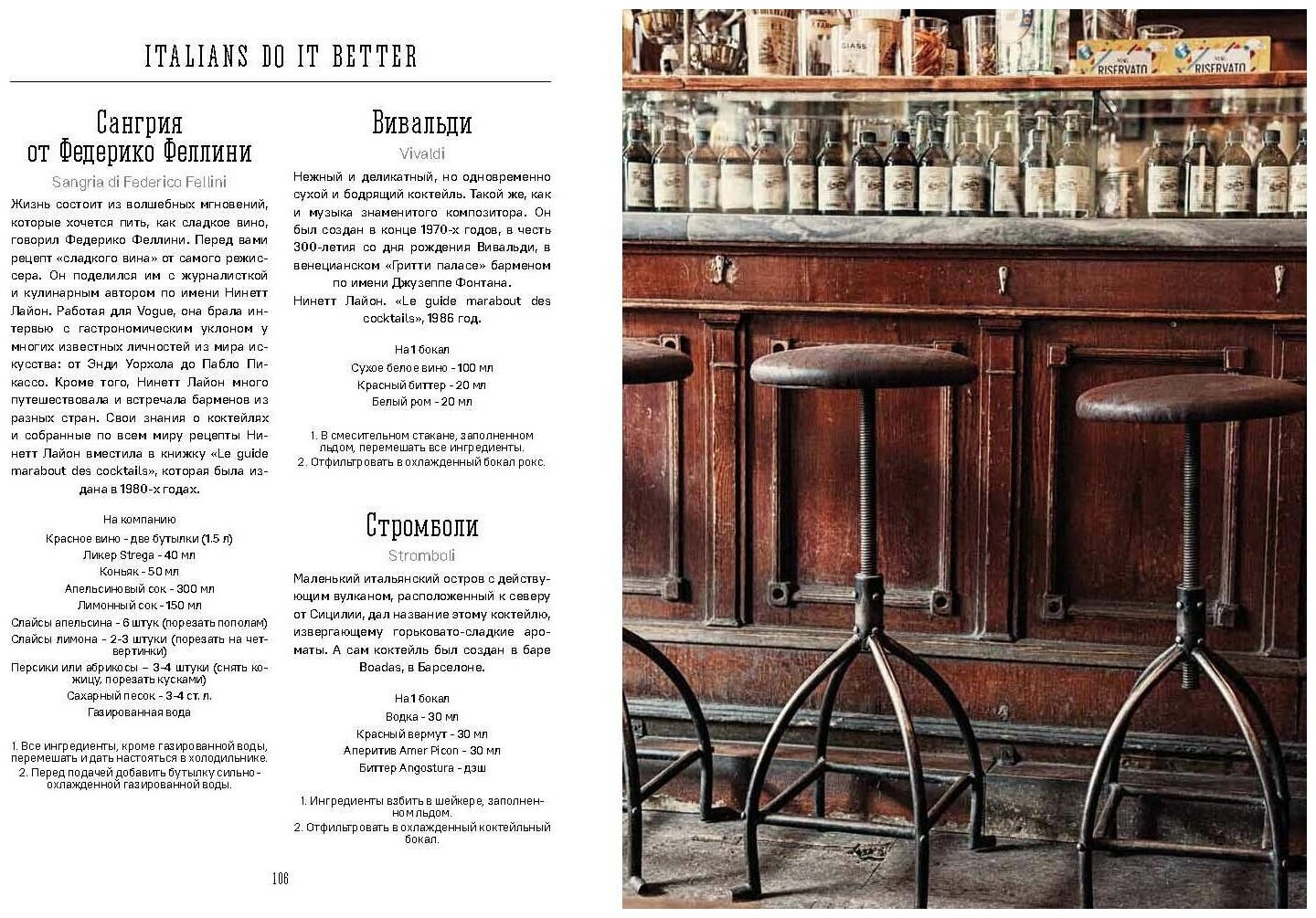 Кроме того, читатель познакомится с ботаникалами, которые сообщают напиткам свои аперитивные свойства. Он также откроет для себя основные законы фудпейринга - утонченного и необходимого искусства, которое позволит создать идеальные пары между едой и коктейлями.