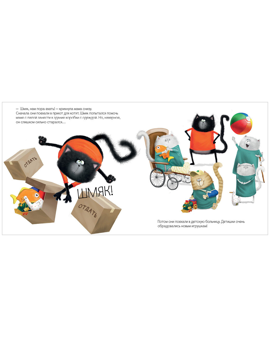 У Шмяка скопилось так много ненужных вещей. Вместе с мамой они решили отдать одежду на переработку, игрушки в детский дом котят, а книжки — в библиотеку.