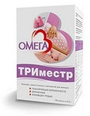 Обеспечивает поступлениепнжк омега-3 в форме триглицеридов (ДГК и ЭПК), витаминовА,В9(фолиевой кислоты),В12,D,Е. Согласно клиническим рекомендациям МАРС (ассоциации специалистов репродуктивной медицины), в период прегравидарной подготовки желательно поступление с пищей 300 мг пнжк в сутки. Суточный прием Омега-3 Триместр содержит: нативные омега-3 – 400 мг (в т.ч. ДГК – 200 мг, ЭПК – 160 мг), витамин А – 0,6 мг, витамин D3 – 5 мкг, витамин Е - 4 мг, витамин В12 - 0,6 мкг, фолиевая кислота - 100 мкг.