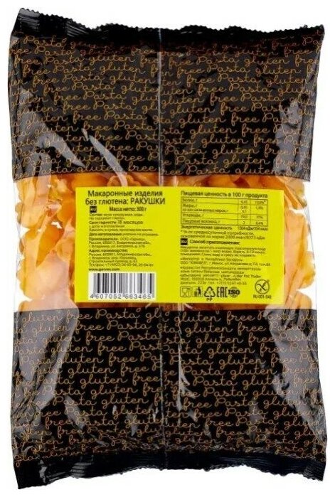Макароны не содержат глютена, пшеничного крахмала, лактозы, молока, яиц и консервантов, имеют натуральный вкус, высокое содержание волокон, без ГМО. Этот продукт рекомендован для профилактики и лечения пищевой аллергии, больных целиакией (непереносимость растительного белка) и людей, соблюдающих безглютеновую диету.