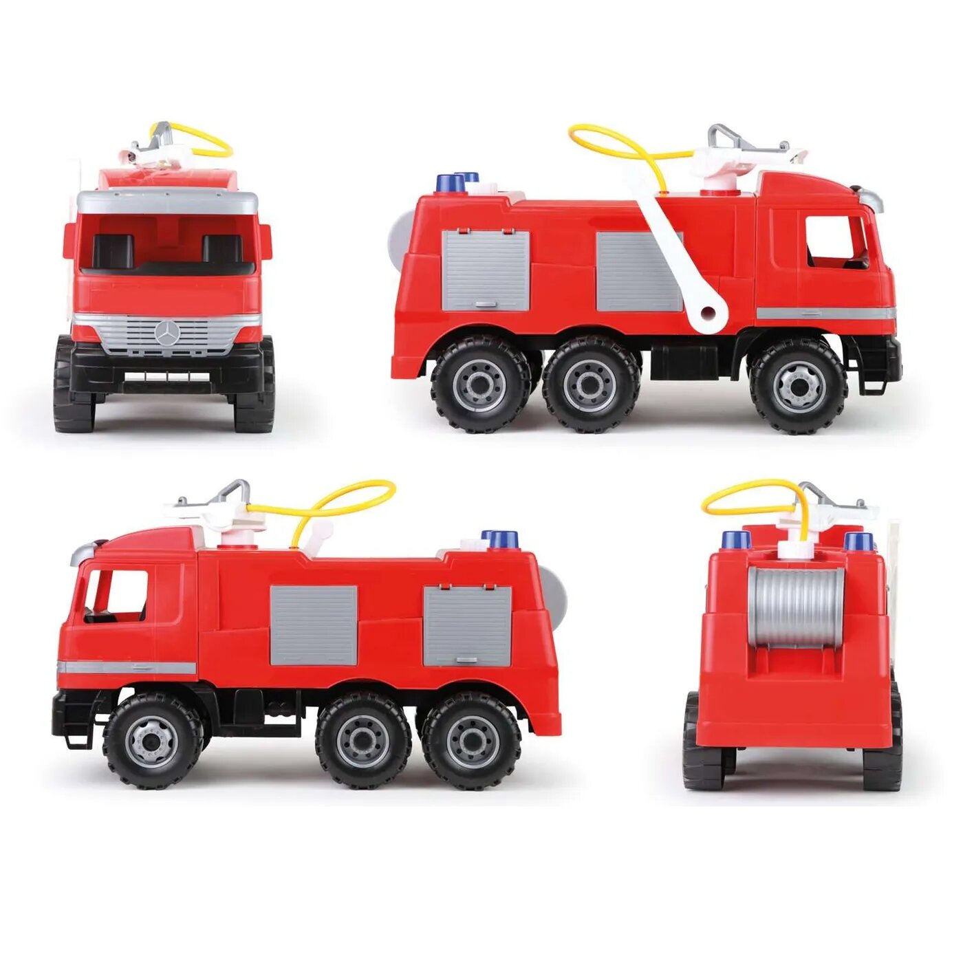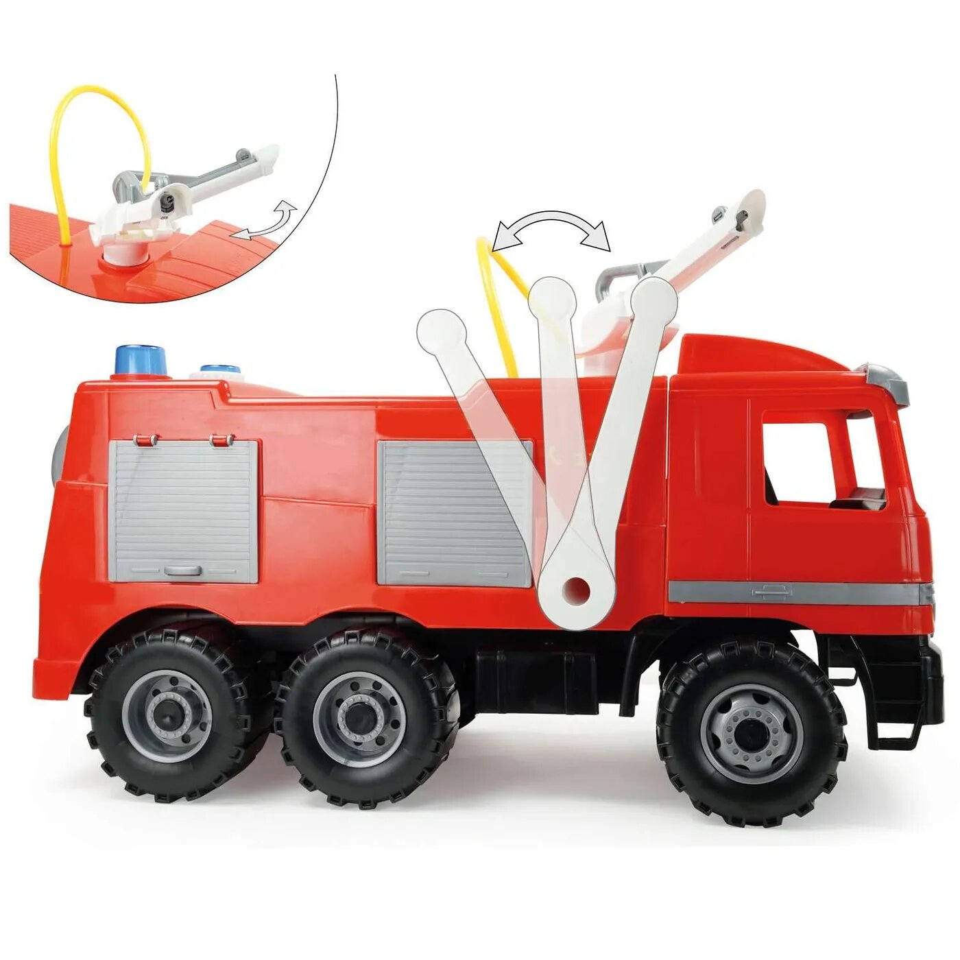 Красочная каталка-пожарная машина GIGA Mercedes Actros подарит ребенку много веселых моментов в процессе игры, познакомит с разнообразием спасательных машин. Пожарная машина станет верным помощником в тушении выдуманных в процессе игры пожаров, так как оснащена пожарным гирдантом, а в специальное отверстие можно залить воду. Пожарный шланг вращается на 360 градусов. С помощью ручного механизма, укрепленного на крыше транспортного средства, выдвигается устойчивый поршневой насос. Дальность струи воды из шланга - 8 метров, емкость резервуара - 1,5 литра. Машинку можно использовать как каталку, посадив ребенка сверху. Выдерживает вес ребенка до 50 кг.