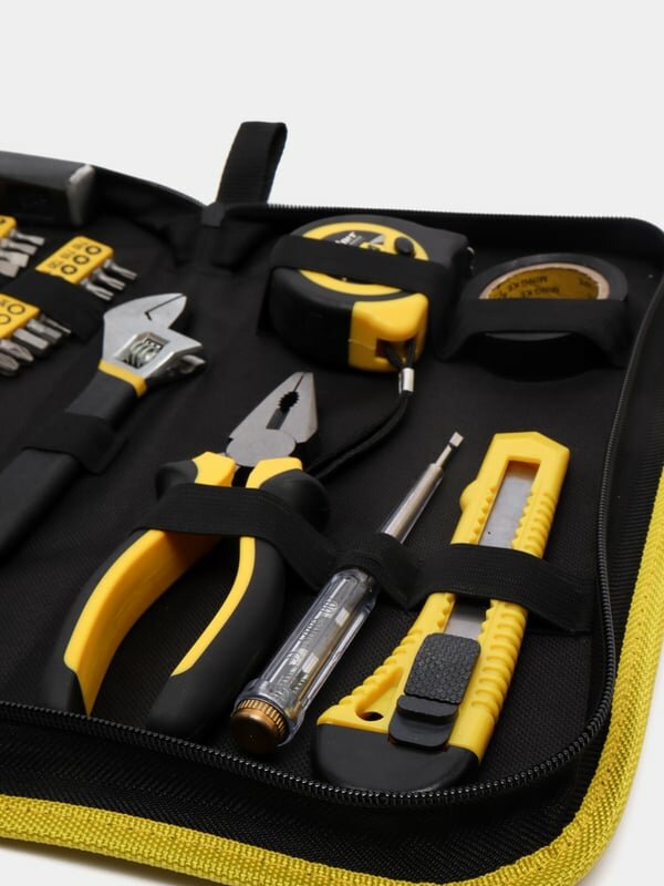 | Состав набора | Молоток,Пассатижи,Шестигранники (имбусовые ключи),Изолента,Рулетка,Адаптер для бит,Биты |