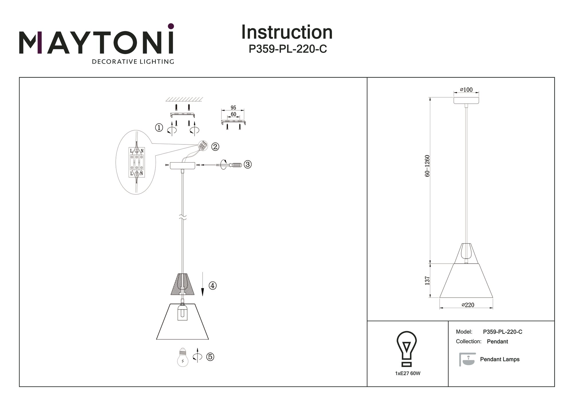 Подвесной светильник - продукт известной компании Maytoni (Германия). Имеет максимальную мощность 60 Вт, освещает площадь до 3 кв. м. Отлично подойдет для таких мест, как гостиная, кафе, кабинет, кухня, над обеденным столом, над кухонным островом. Впишется в интерьеры следующих стилей: модерн.