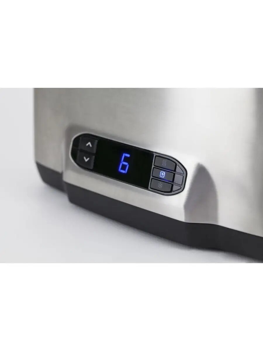 Тостер для обжаривания ломтиков тостового хлеба. Рассчитан на одновременное поджаривание 2 ломтиков хлеба. По окончанию приготовления функция MotorLift плавно поднимает тосты. Данная модель оснащена ЖК-дисплеем с индикатором степени прожарки.