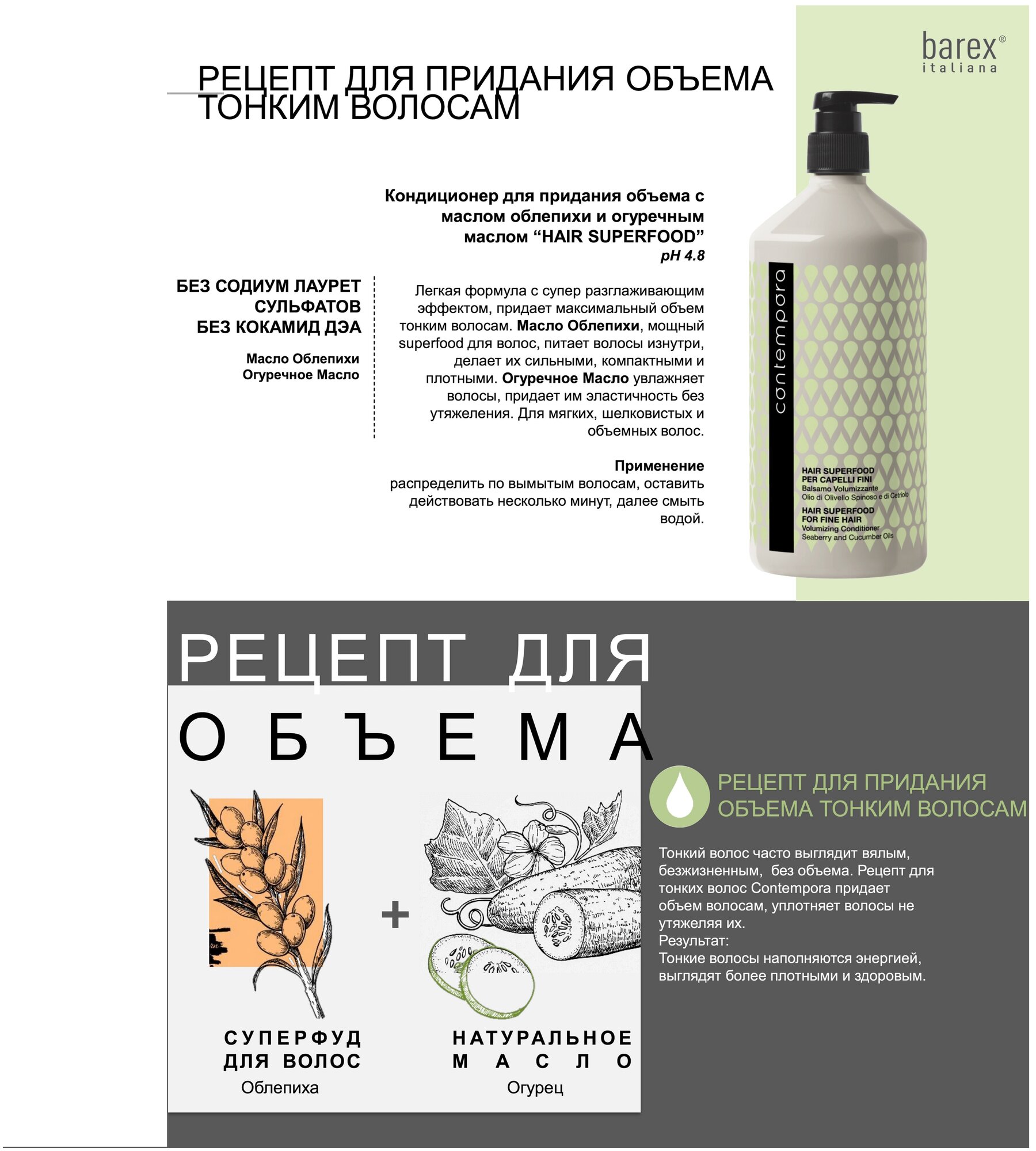 Barex Кондиционер для придания объема с маслом облепихи и огуречным маслом Balsamo Volumizzante Olio di Olivello Spinoso e di Cetriolo 1000 мл (Barex ) (B18558)