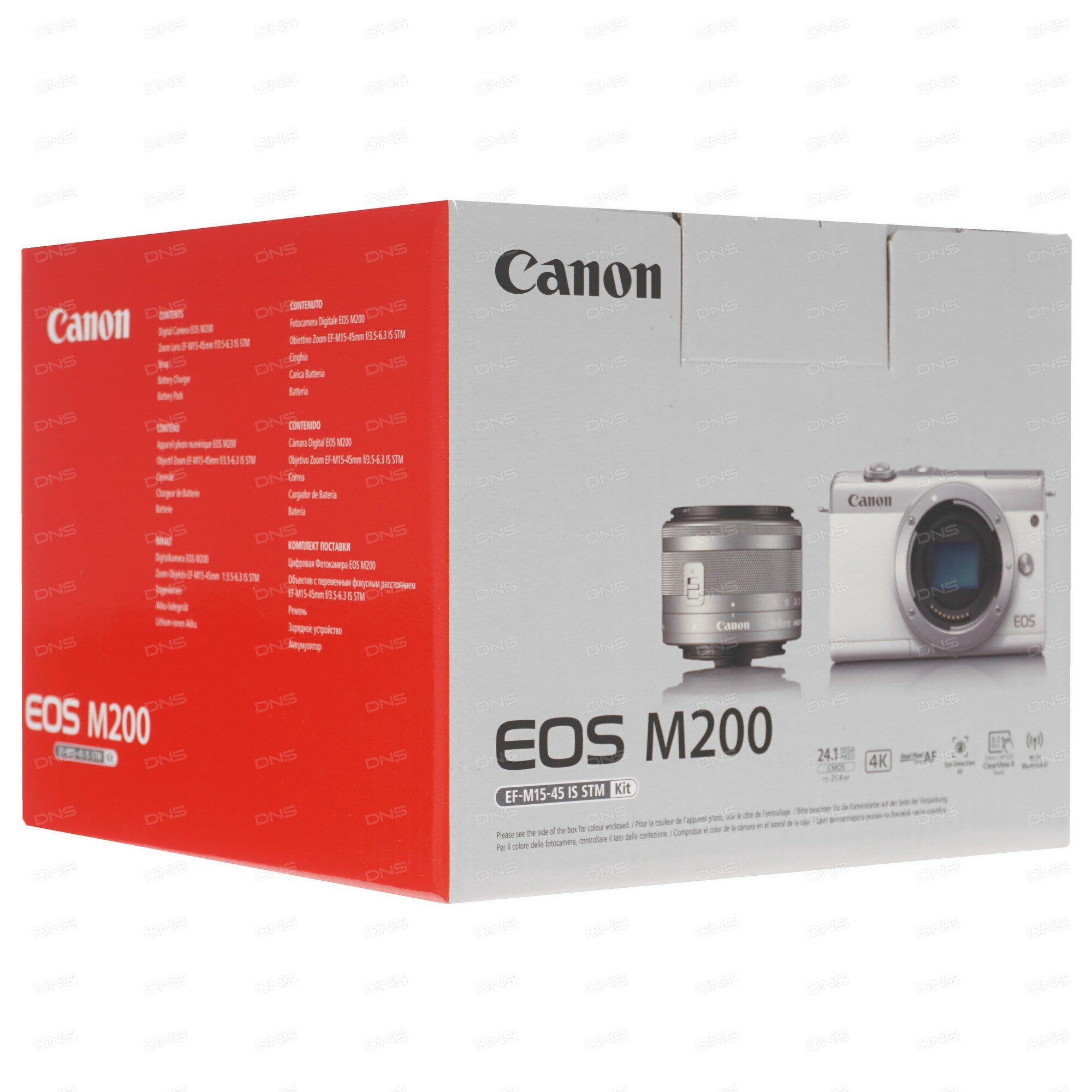 | Комплектация | объектив EF-M15-45mm f/3.5-6.3 IS STM с крышками, аккумулятор LP-E12, зарядное устройство LC-E12 со шнуром питания, ремень EM-200DB, крышка камеры R-F-4 |