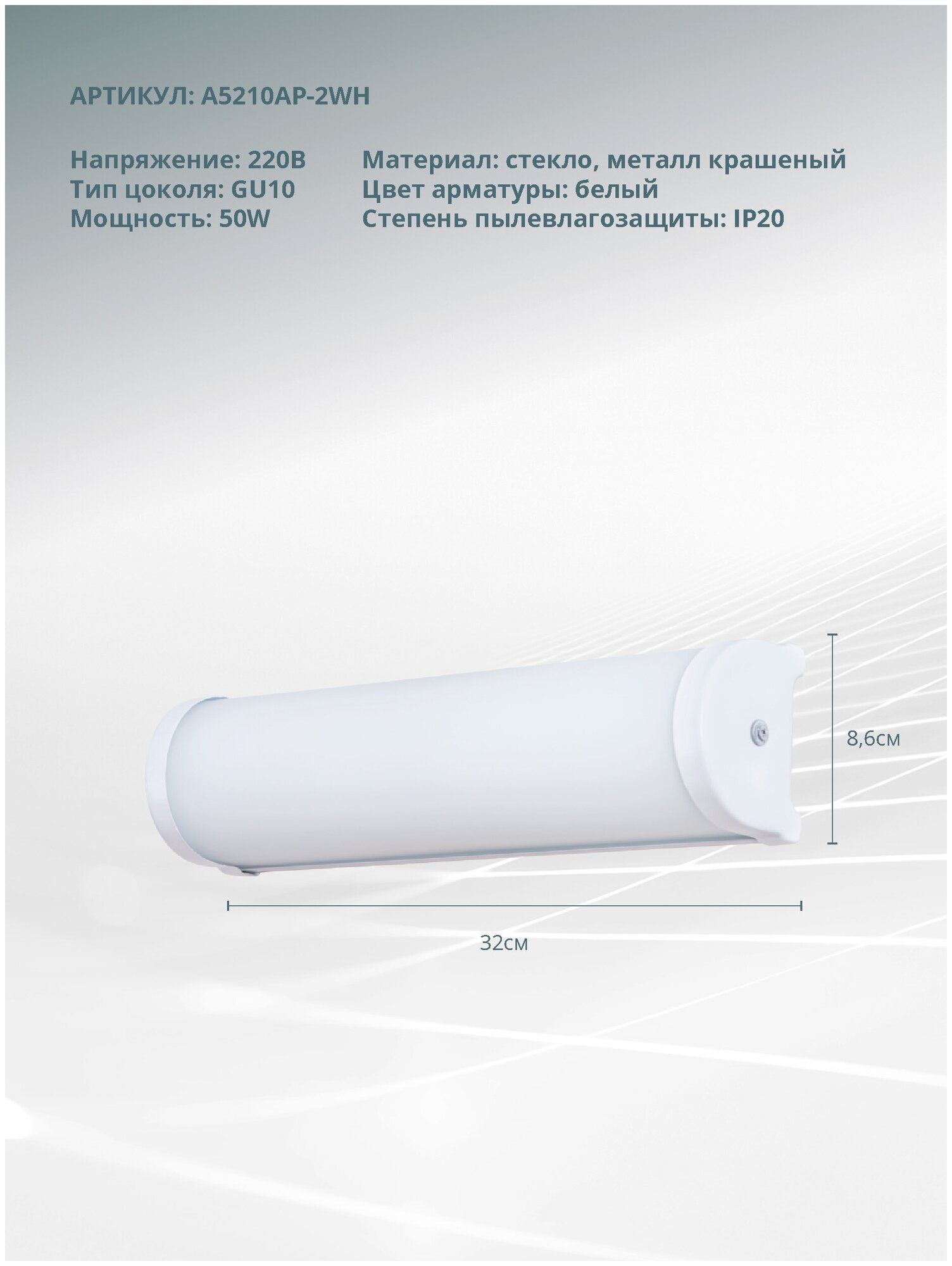 Светильник для ванной ARTE LAMP Aqua-bara 9x32x9 см белый Artelamp Aqua-bara A5210AP-2WH