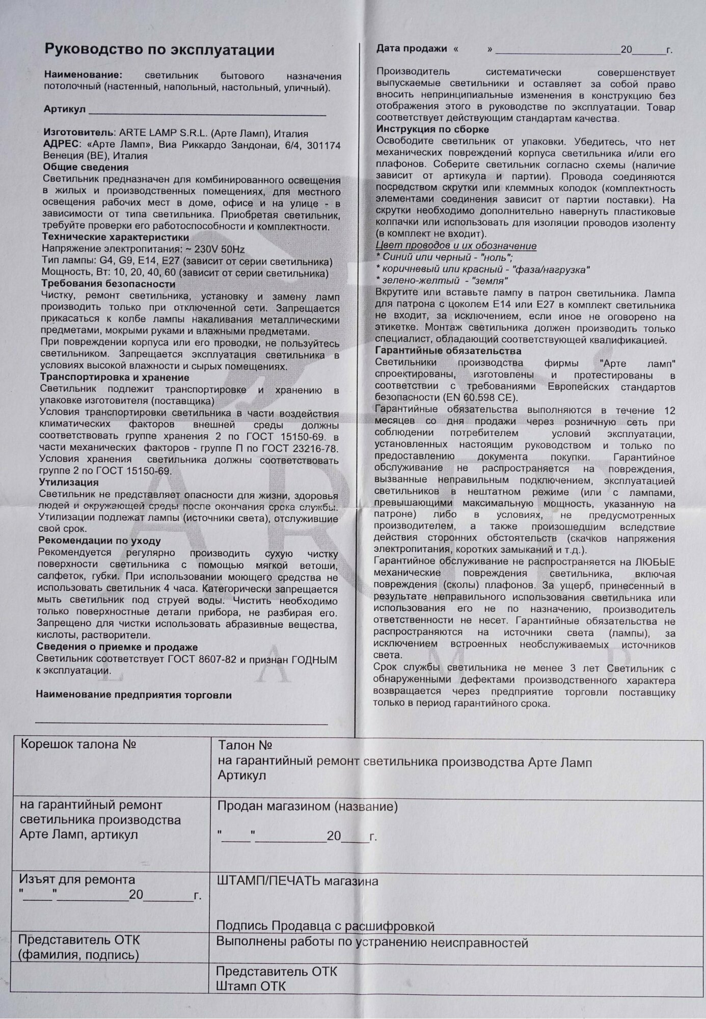 | Марка | ARTE LAMP |
