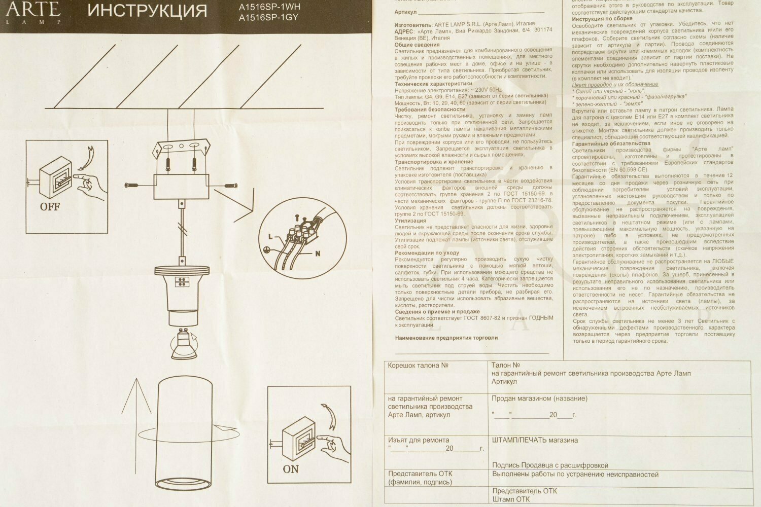 | Гарантия | 1 год |