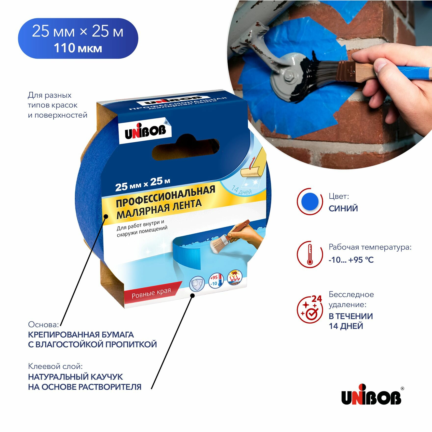 Профессиональная малярная лента для наружных и внутренних работ UNIBOB 50 мм х 2