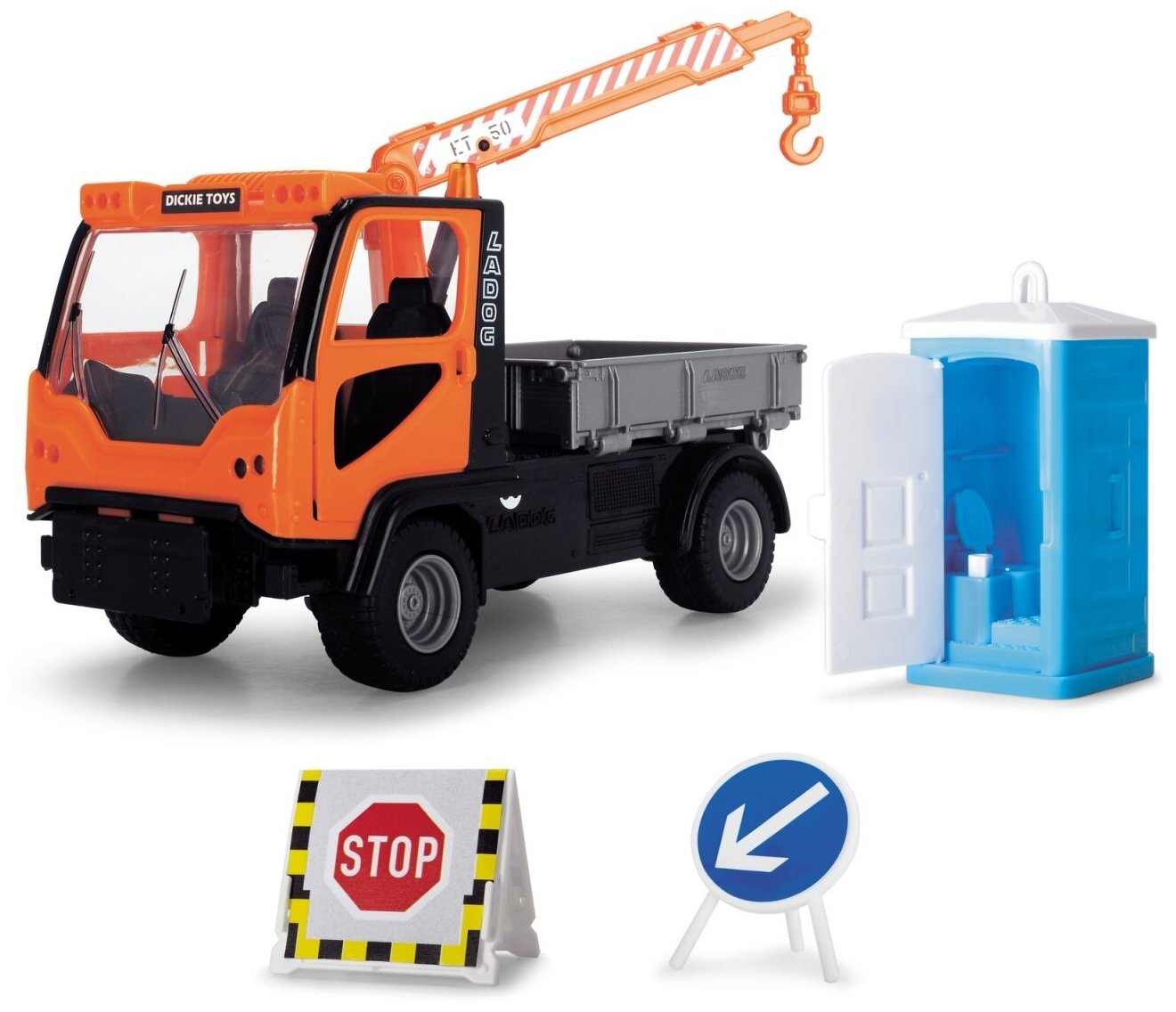 Удивительно детально проработанный автокран Ladog T-1700 со свободным ходом, игровая фигурка с защитным снаряжением и мобильный туалет со звуком — это тоже неотъемлемая часть строительной площадки — убедитесь в этом.