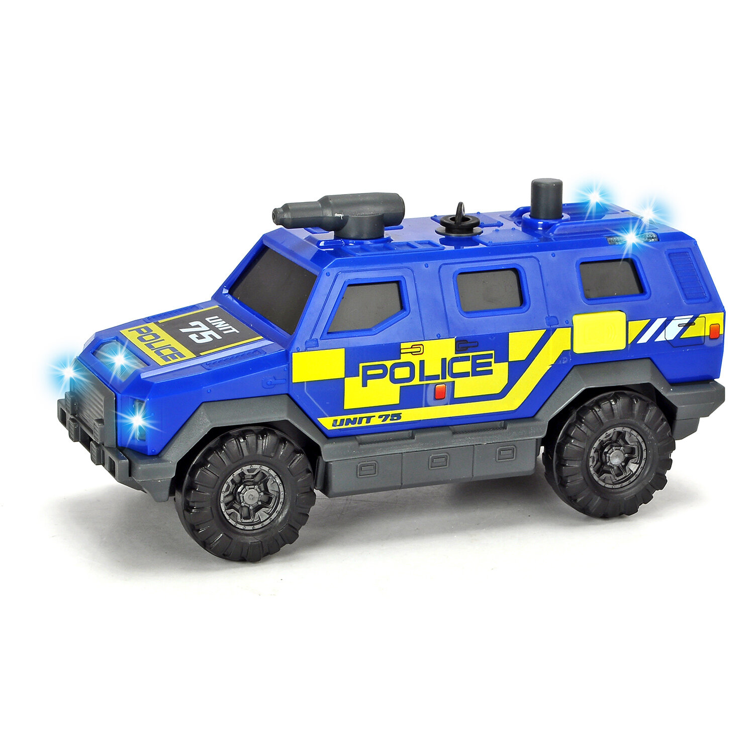 SOS серия. Полицейский внедорожник со световыми и звуковыми функциями, пушка брызгает водой, свободный ход. Размер 18 см (масштаб 1:32).