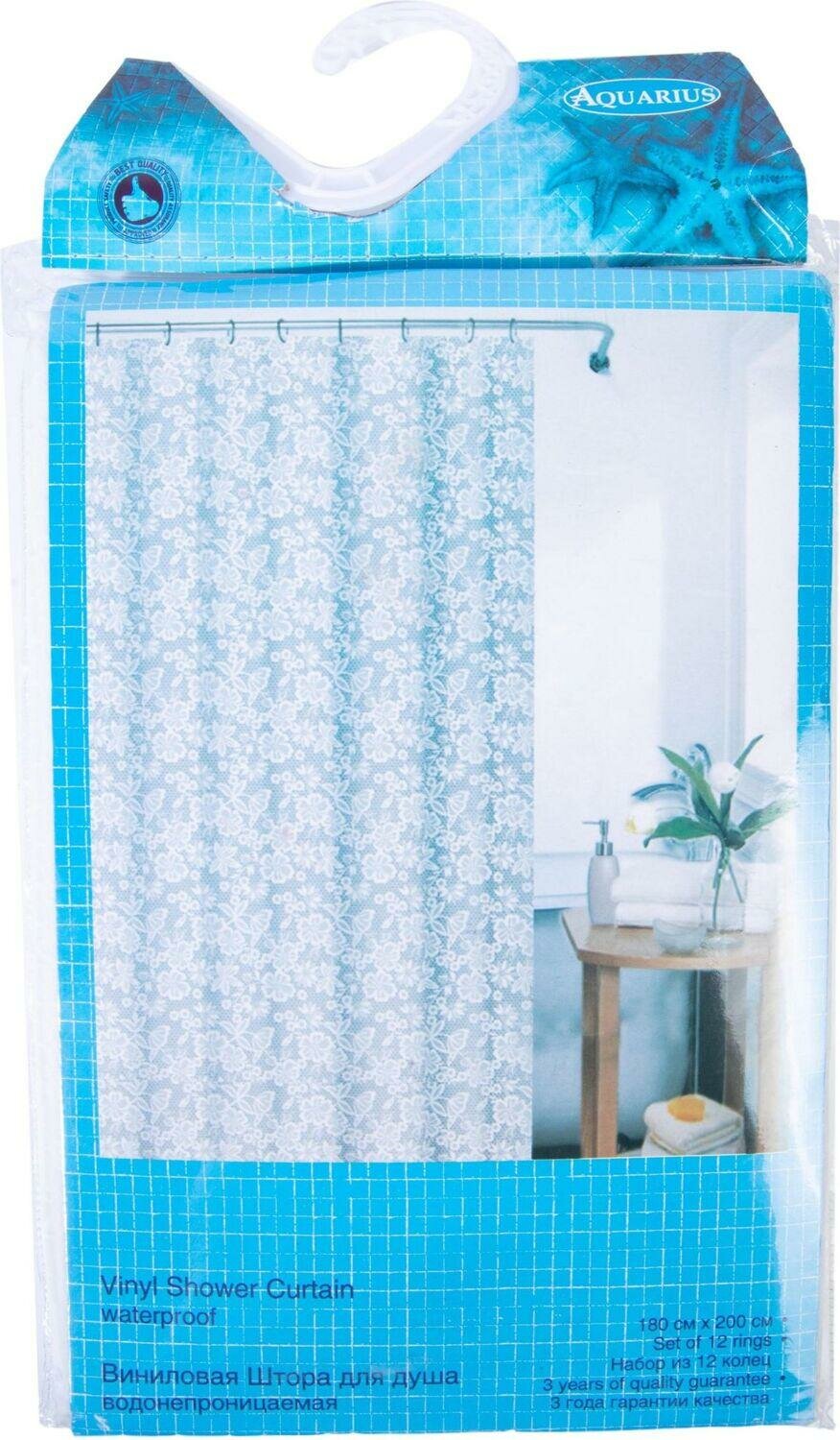 Штора для ванны и душа УЗОРЫ 180х200 см белый Vanstore