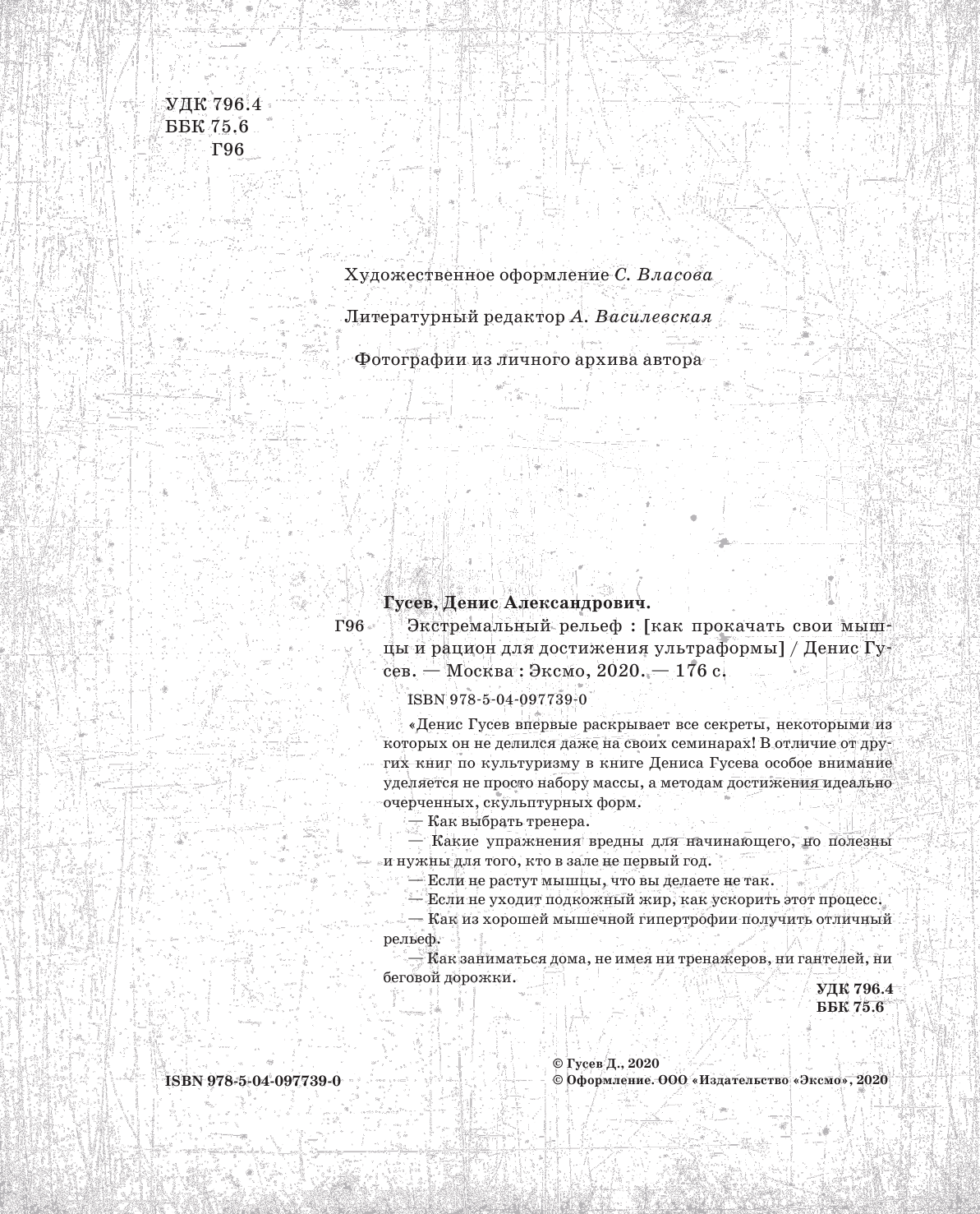 Денис Гусев. Экстремальный рельеф. Как прокачать свои мышцы и рацион для достижения ультра-формы (Гусев Денис Александрович); Эксмо, 2020