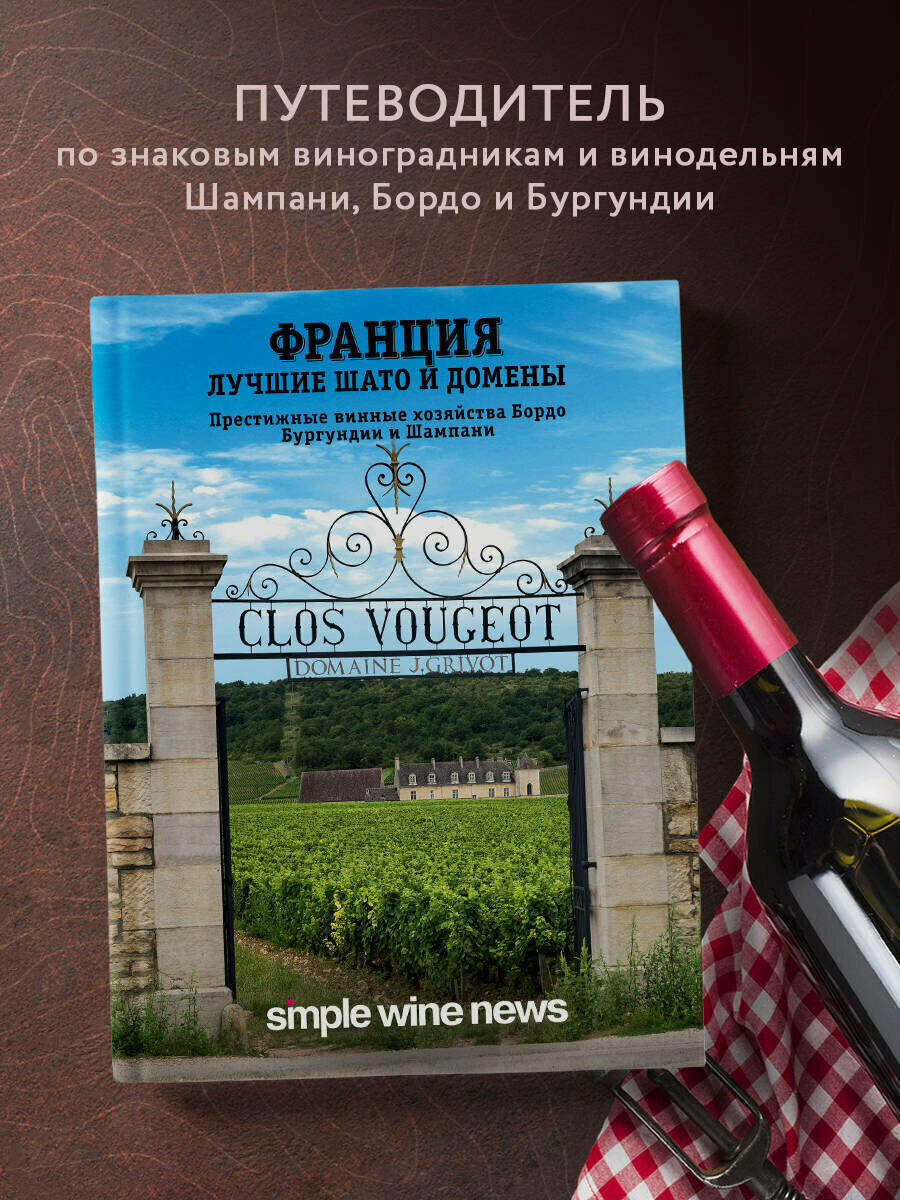 Simple Wine News (самый популярный журнал о вине) представляет путеводитель по виноградникам и винодельням Франции, где представлено 50 хозяйств из самых знаковых регионов: Шампани, Бордо и Бургундии.